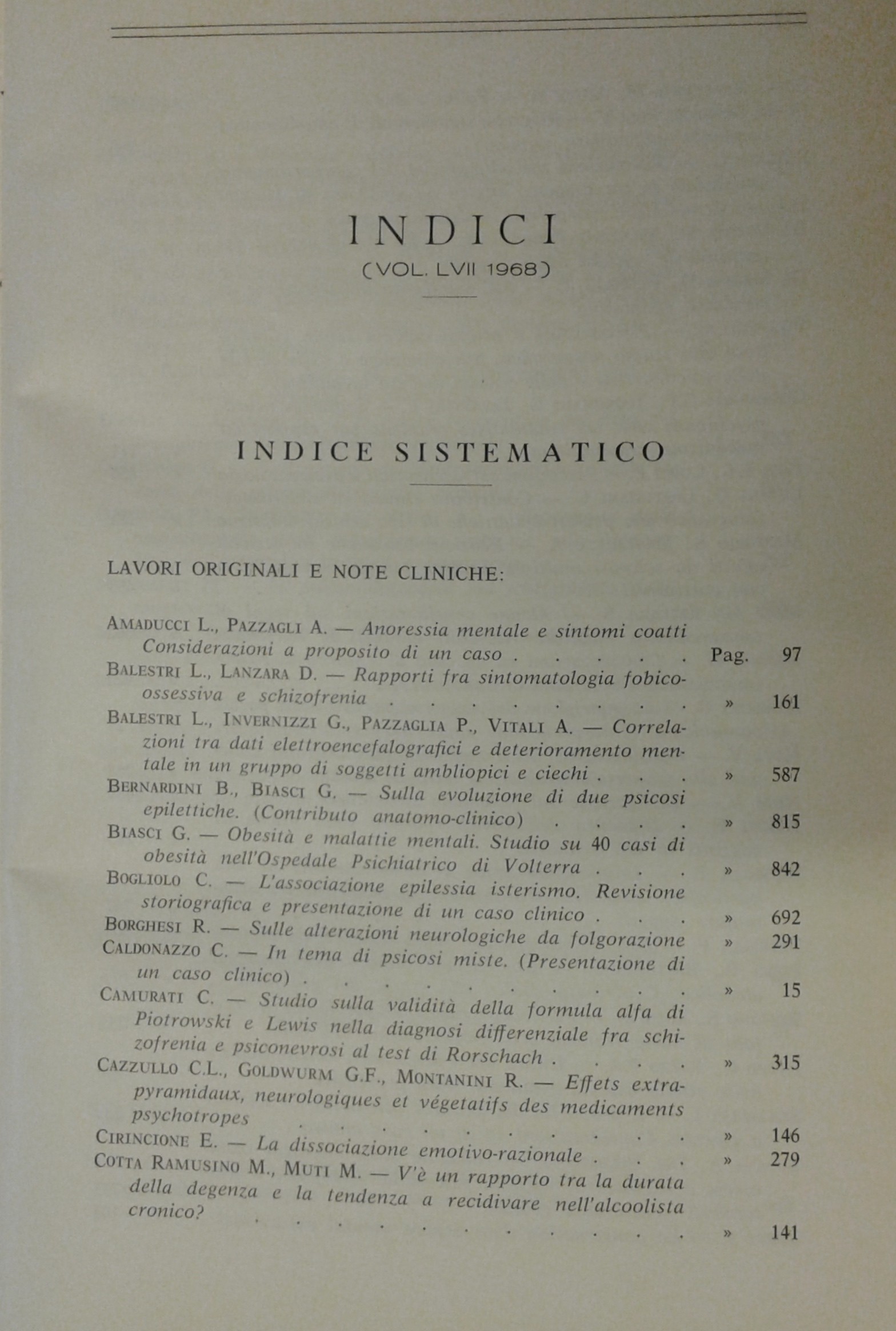 Rassegna di studi psichiatrici. Diretta da Antonio D'Ormea. Vol. LVII - 1968