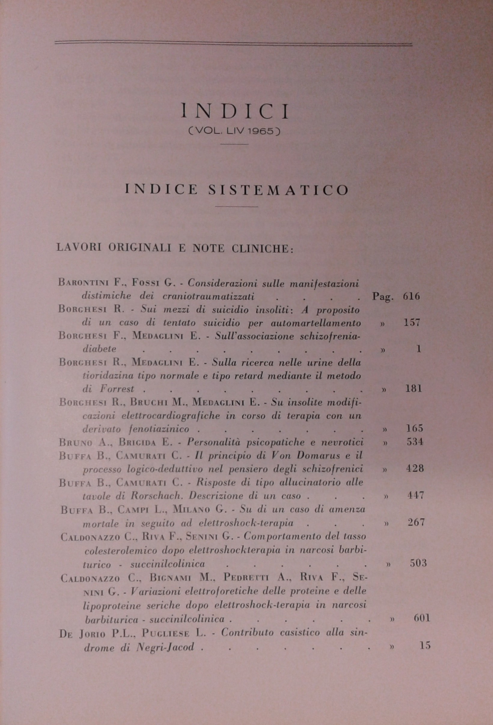 Rassegna di studi psichiatrici. Diretta da Antonio D'Ormea. Vol. LIV - 1965