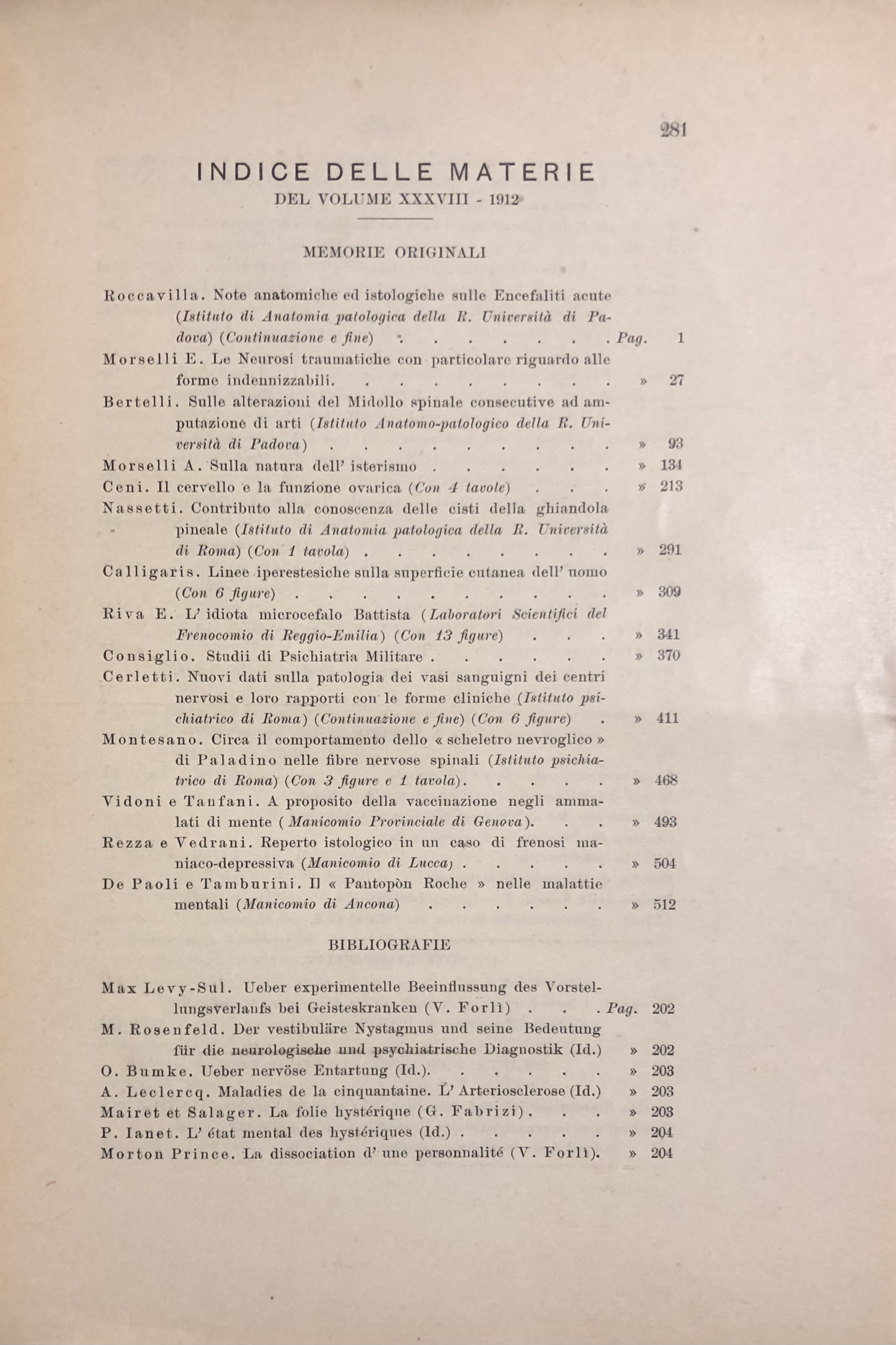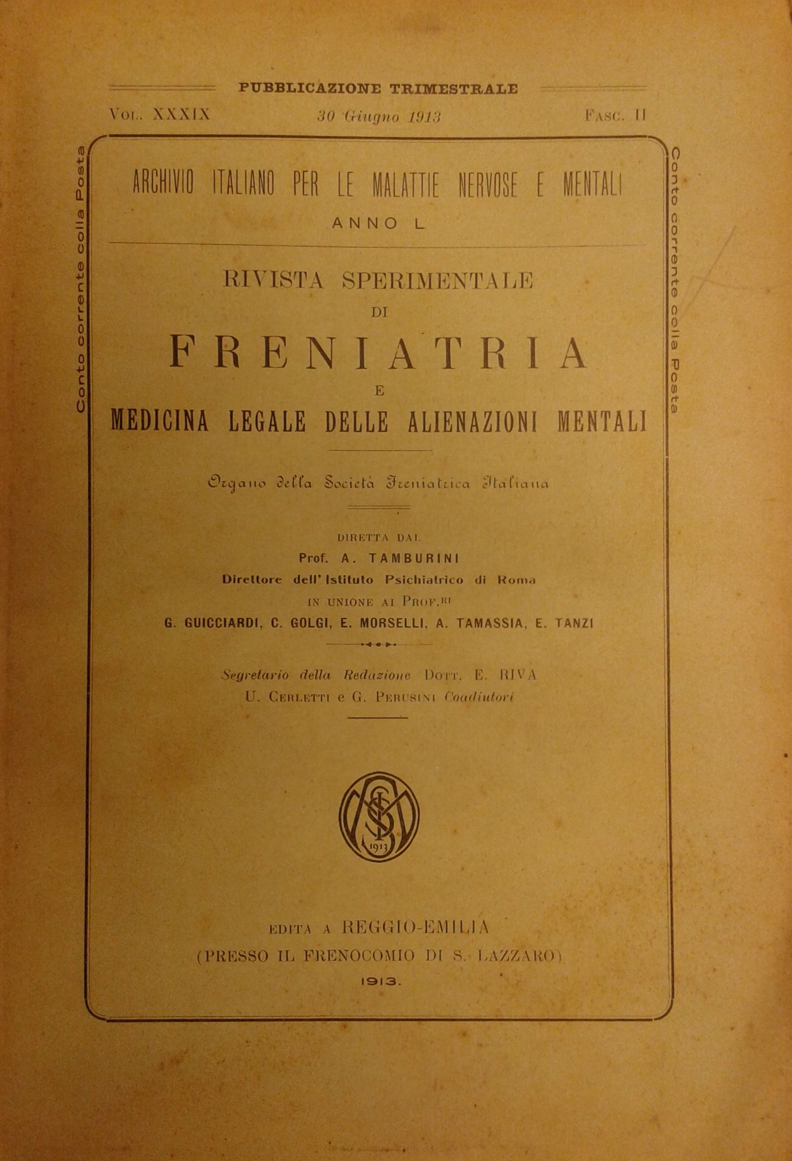 Rivista sperimentale di freniatria e di medicina legale delle alienazioni mentali. Organo della società freniatrica italiana. Vol. XXXIX - Anno 1912