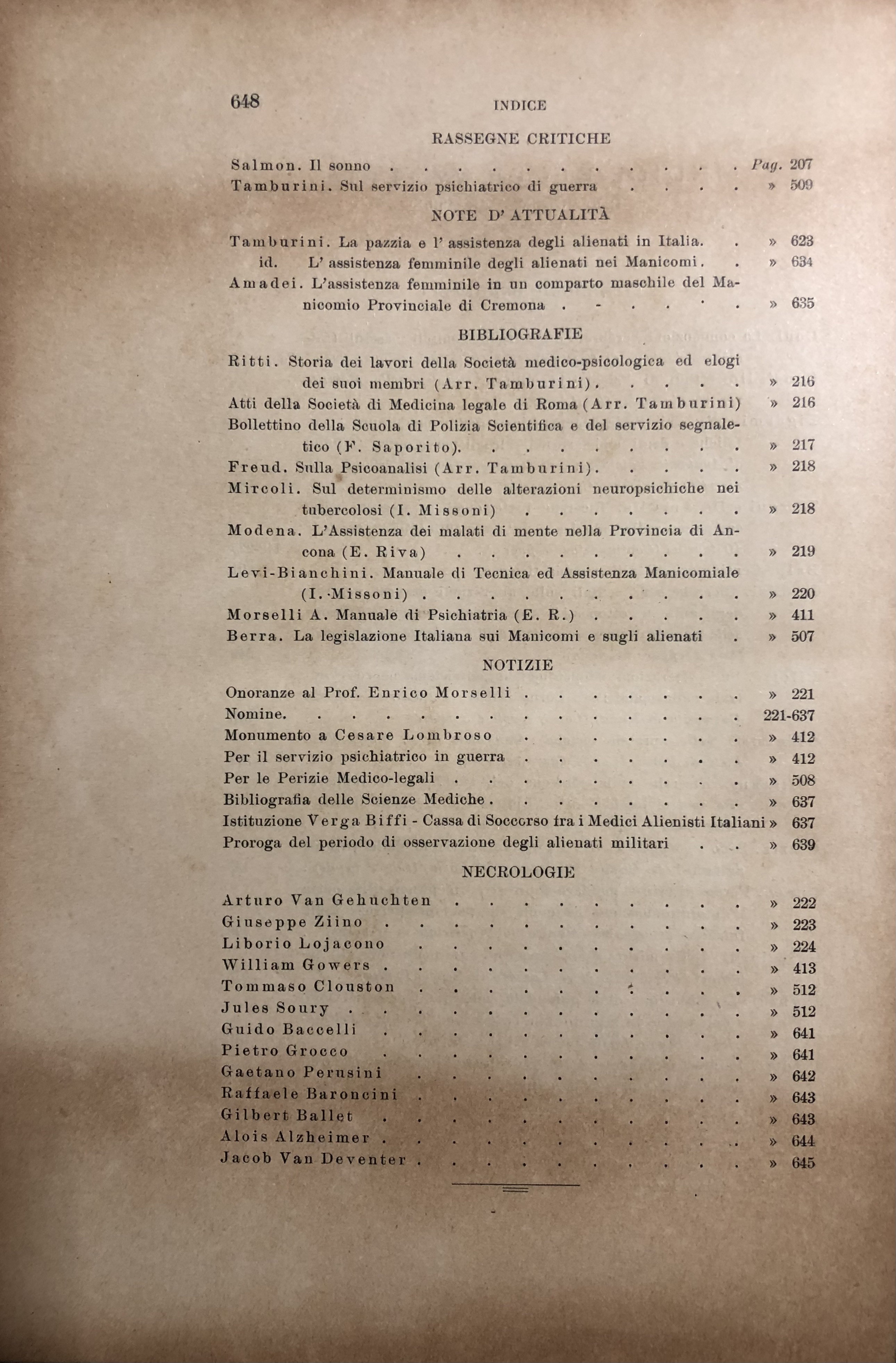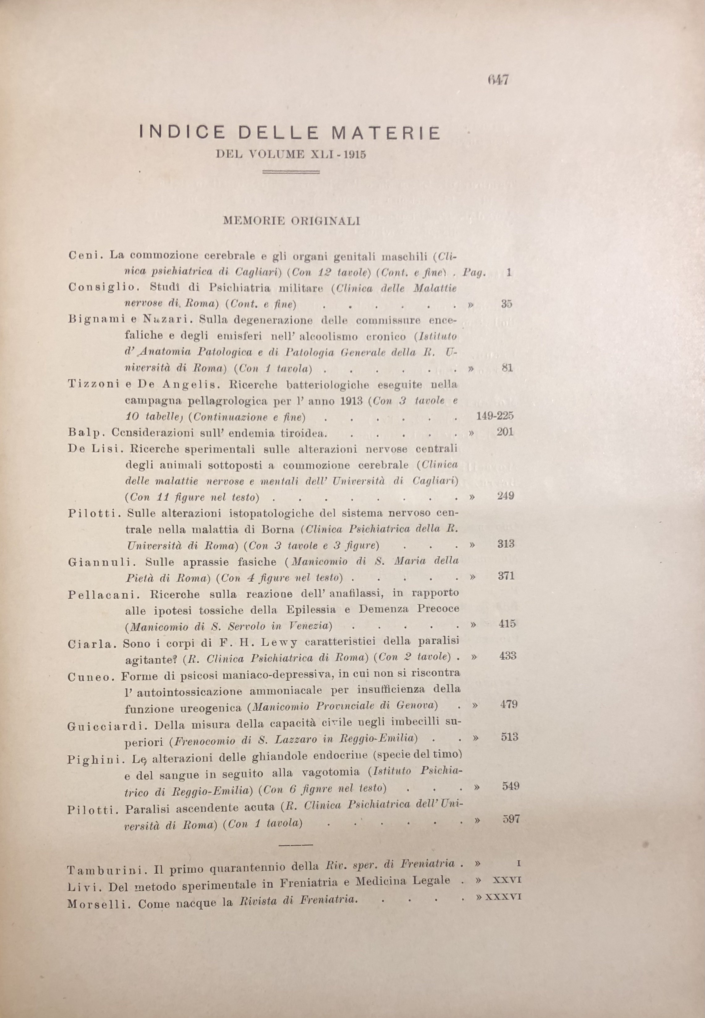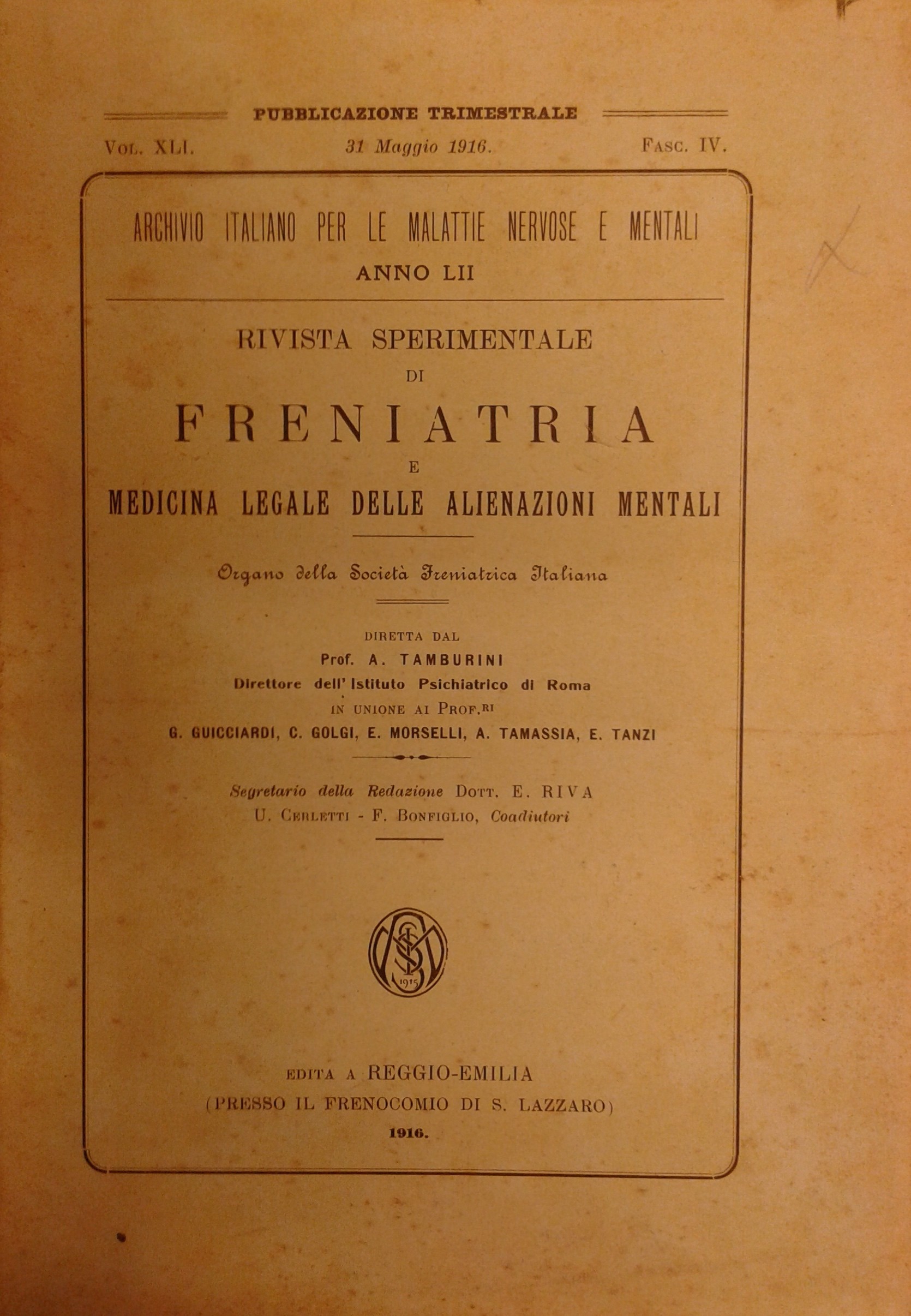 La rivista fu fondata da Carlo Livi nel 1875. Fu diretta dallo stesso Livi con la collaborazione di F. Carrara ma solo per il primo anno. Successivamente fu diretta anche da Tamburini, Golgi, Morselli, Tamassia, Verga, Biffi, Tanzi, Guicciardi. La rivista nel 1896 cambia nome in Rivista sperimentale di freniatria e di medicina legale delle alienazioni mentali.