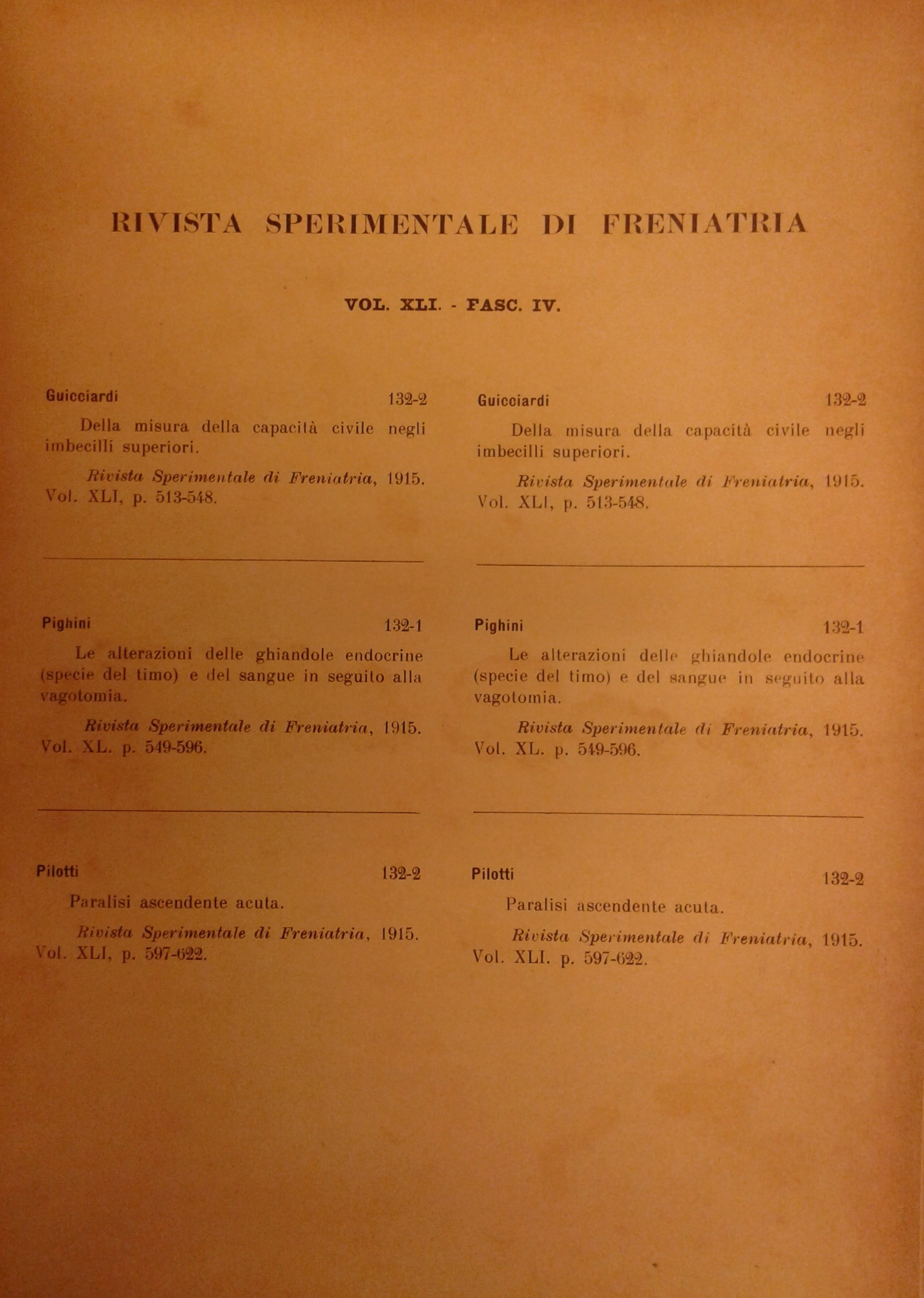 Rivista sperimentale di freniatria e di medicina legale delle alienazioni mentali. Organo della società freniatrica italiana. Vol. XLII - Anno 1916