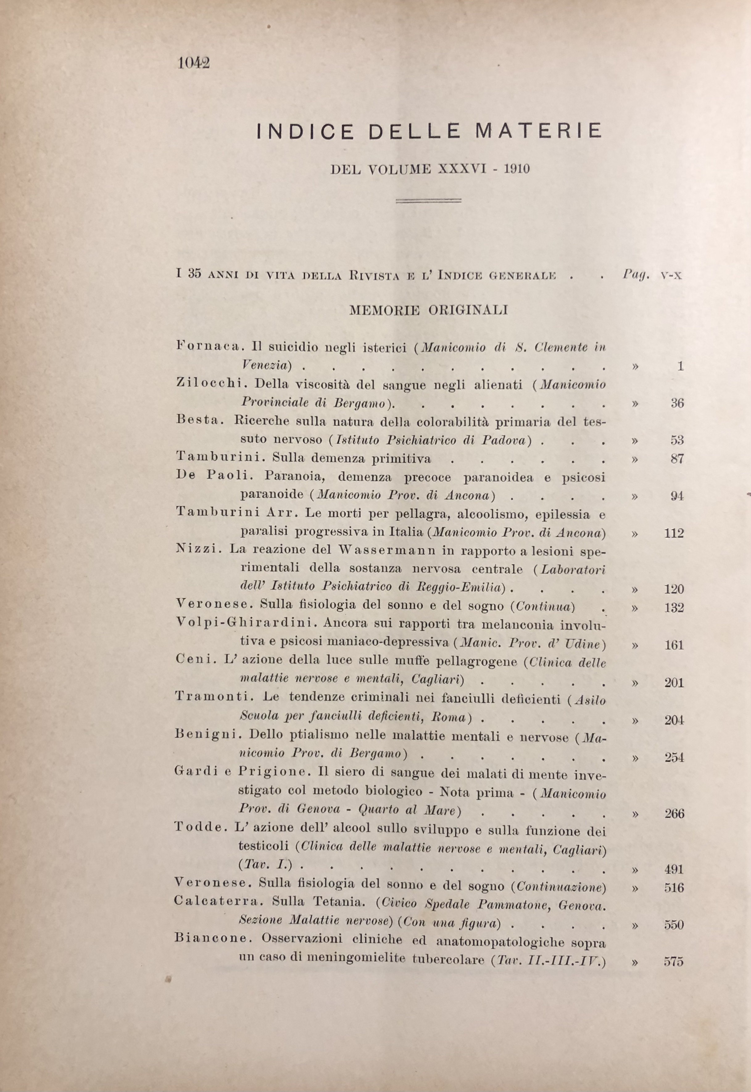 Rivista sperimentale di freniatria e di medicina legale delle alienazioni mentali. Organo della società freniatrica italiana. Vol. XXXVI - Anno 1910