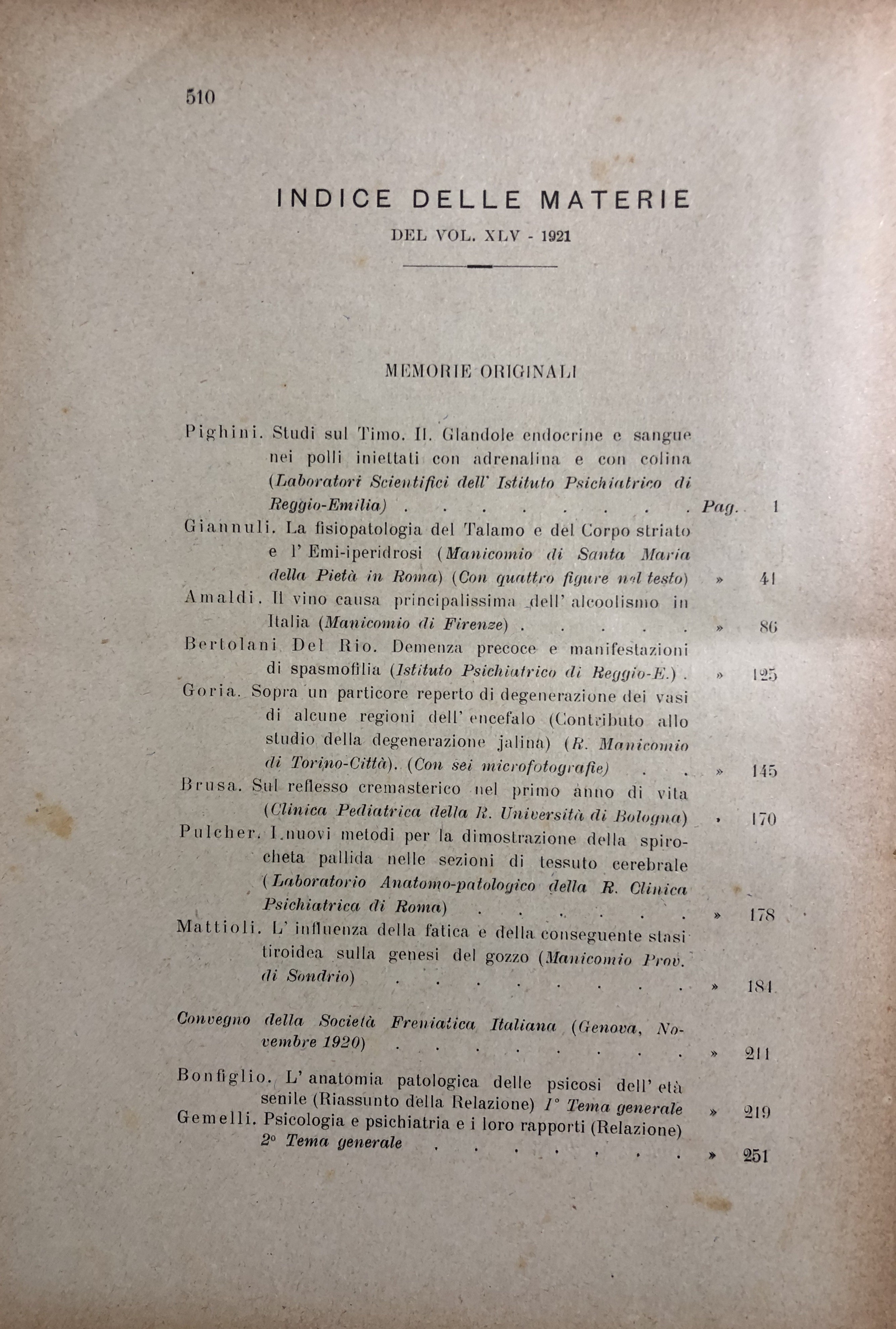 Rivista sperimentale di freniatria e di medicina legale delle alienazioni mentali. Organo della società freniatrica italiana. Vol. XLV - Anno 1921