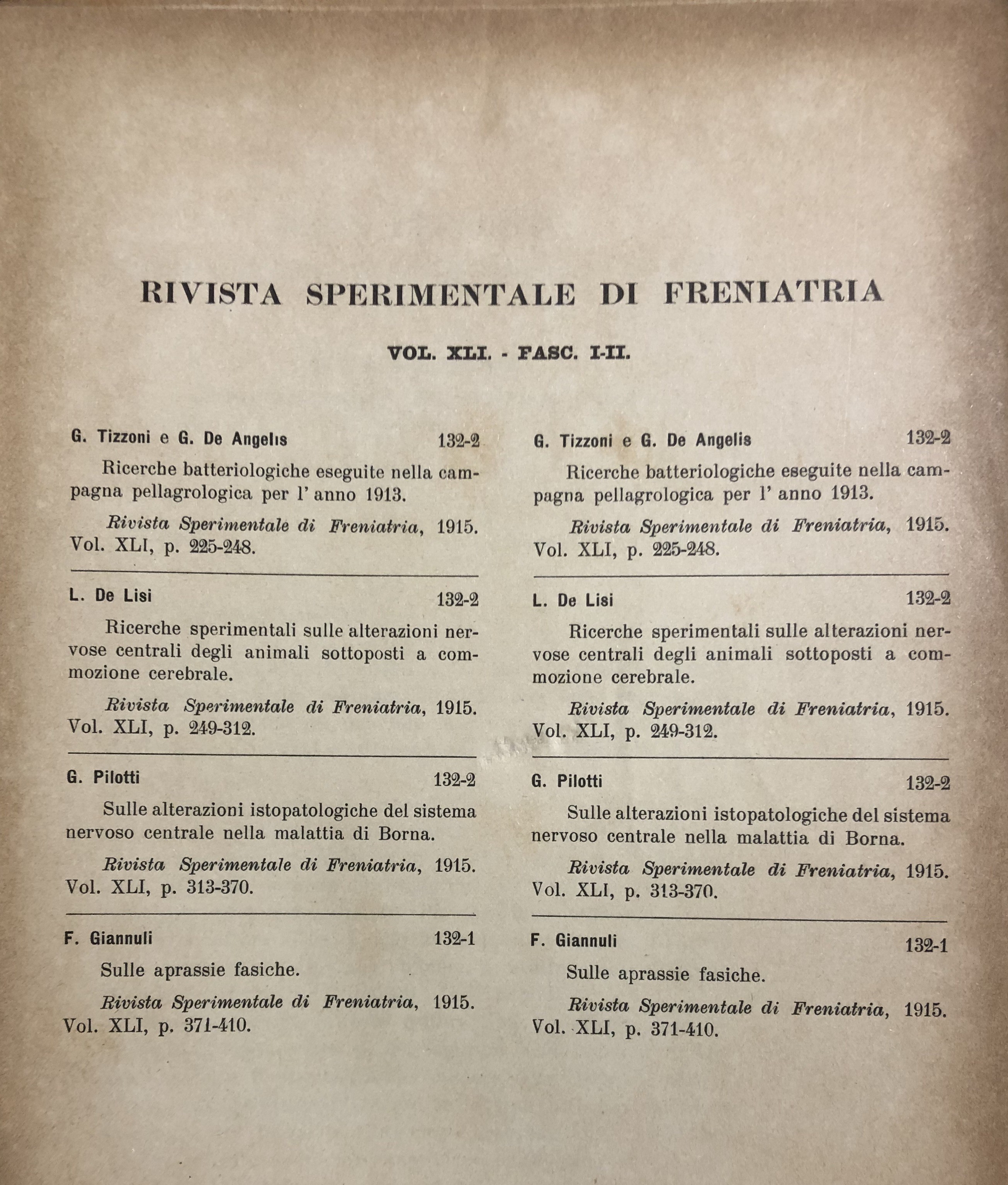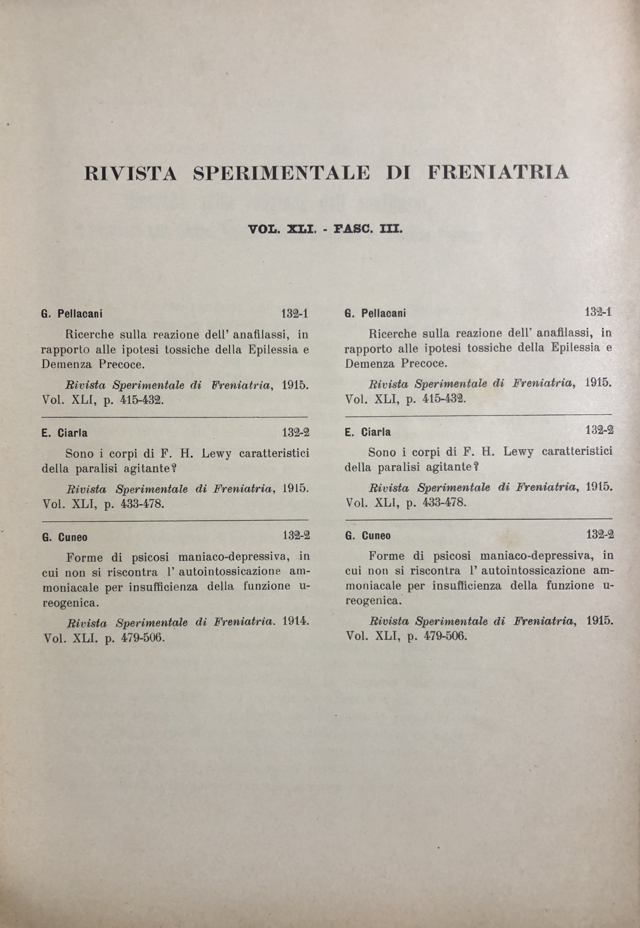 Rivista sperimentale di freniatria e di medicina legale delle alienazioni mentali. Organo della società freniatrica italiana. Vol. XLI - Anno 1915