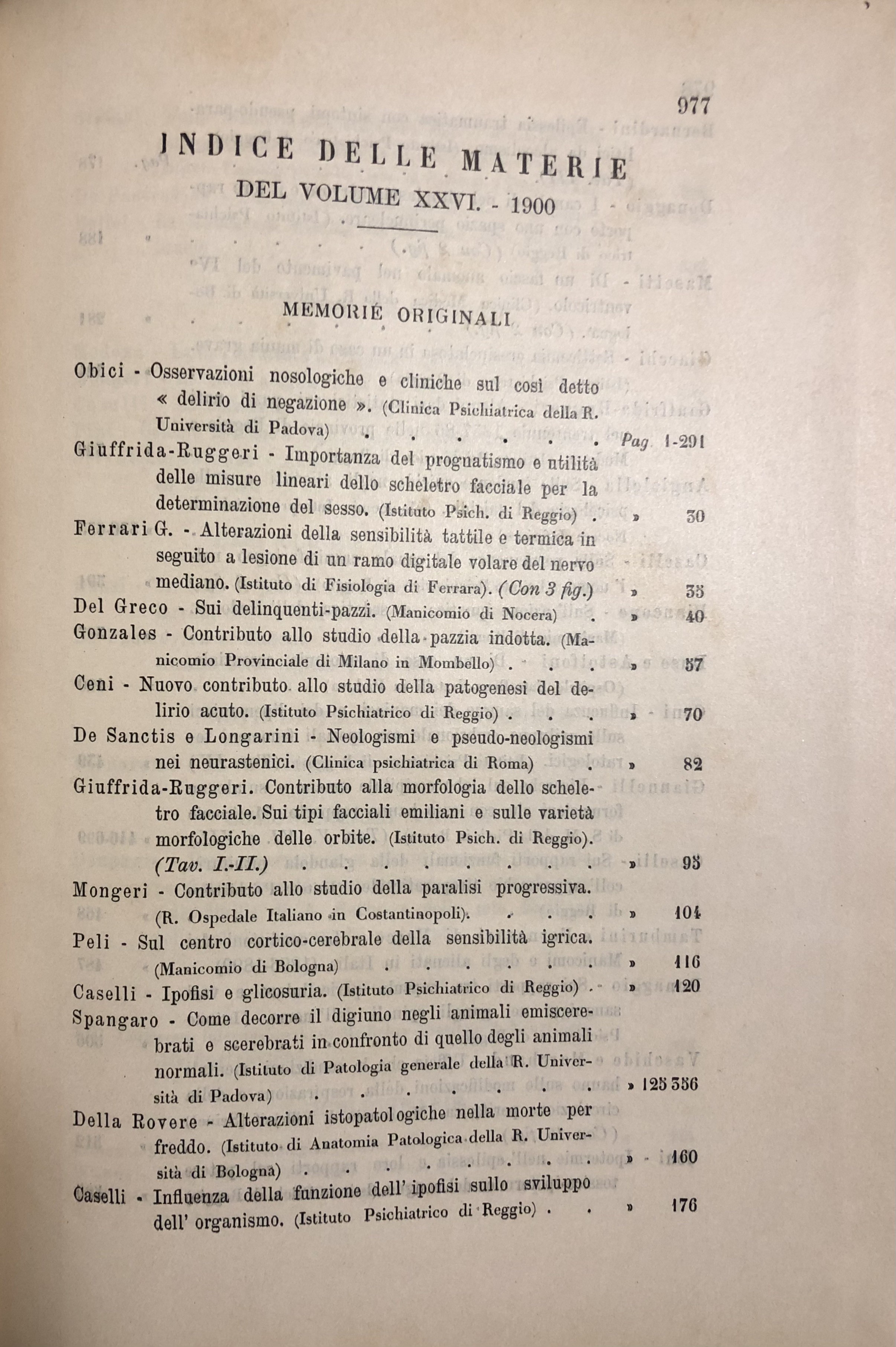 Rivista sperimentale di freniatria e di medicina legale delle alienazioni mentali. Organo della società freniatrica italiana. Vol. XXVI - Anno 1900