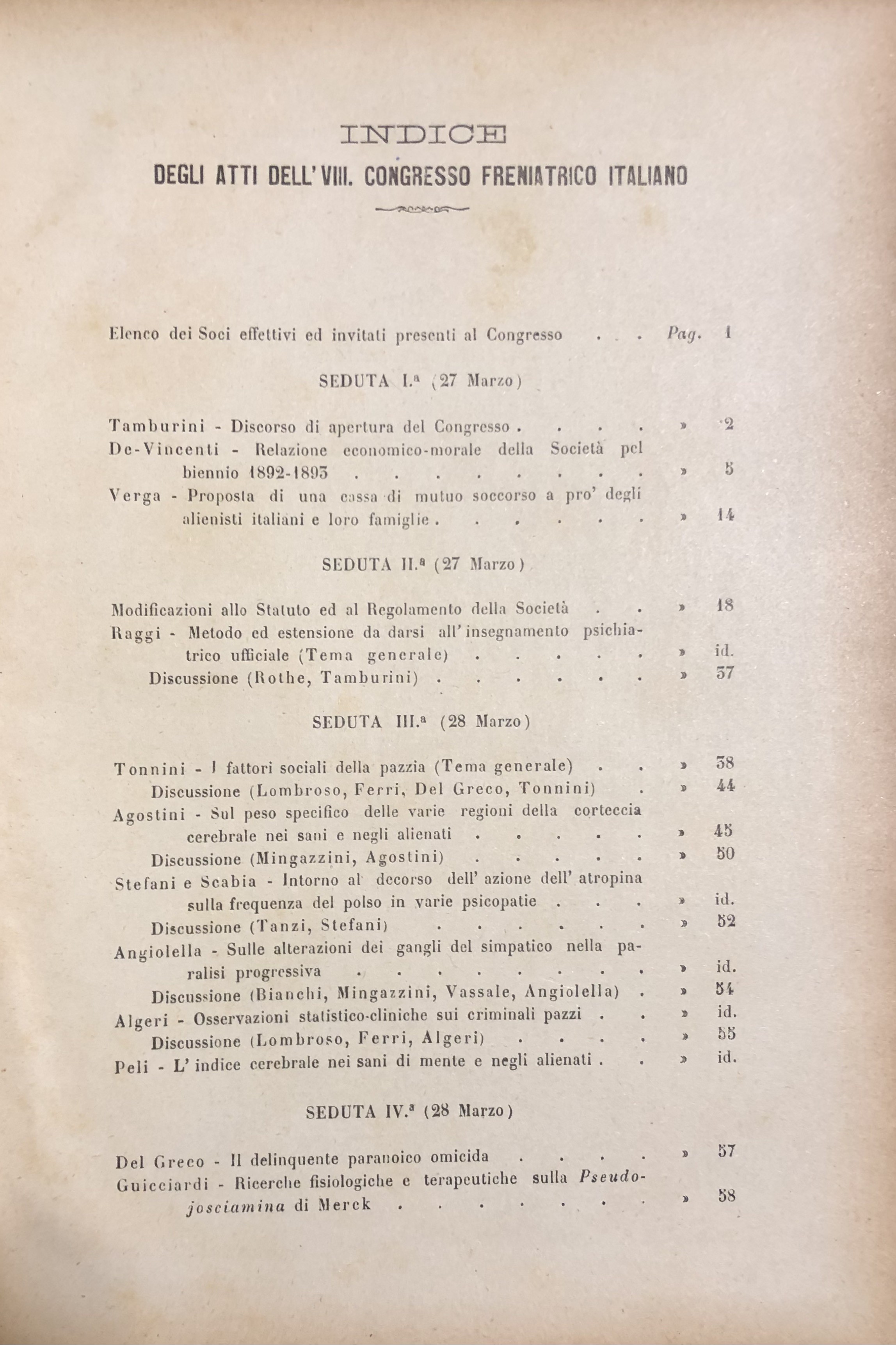 La rivista fu fondata da Carlo Livi nel 1875. Fu diretta dallo stesso Livi con la collaborazione di F. Carrara ma solo per il primo anno. Successivamente fu diretta anche da Tamburini, Golgi, Morselli, Tamassia, Verga, Biffi, Tanzi, Guicciardi. La rivista nel 1896 cambia nome in Rivista sperimentale di freniatria e di medicina legale delle alienazioni mentali.