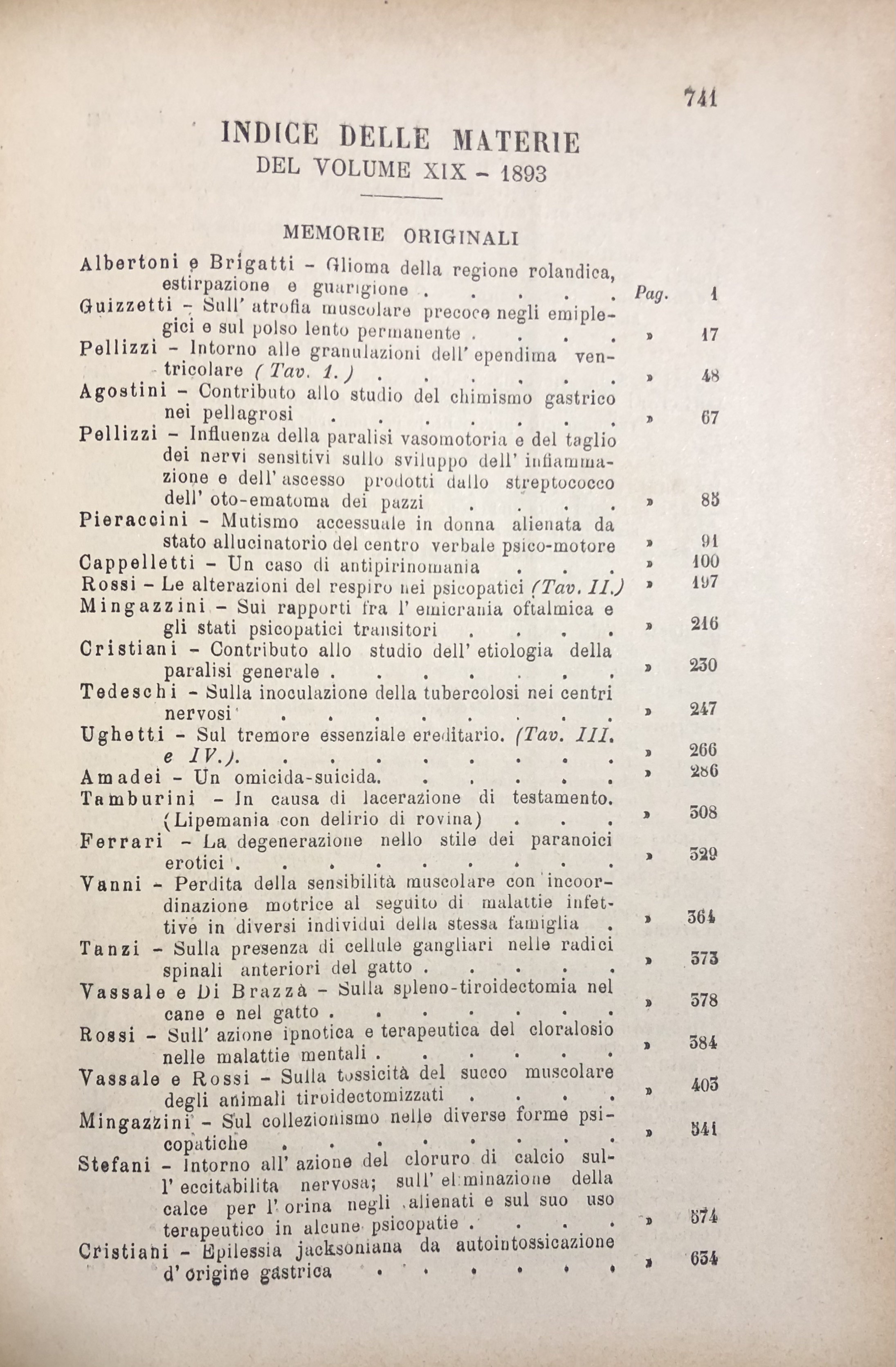Rivista sperimentale di freniatria e di medicina in relazione con l'antropologia e le scienze giuridiche e sociali. Vol. XIX - Anno 1893