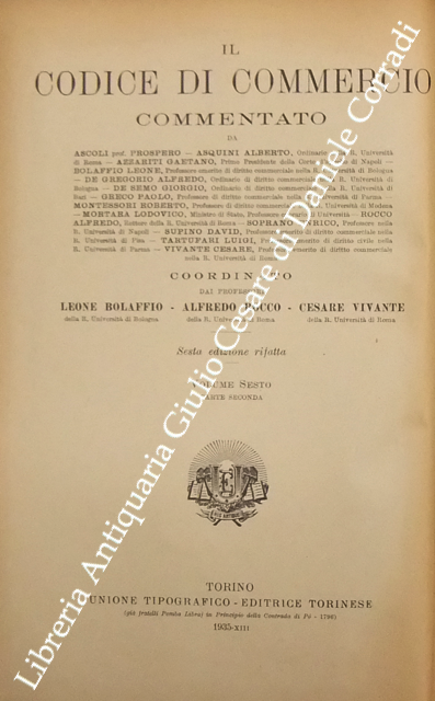 Collana: Il Codice di Commercio Commentato da Ascarelli Ascoli Asquini Bolaffio Cicu Cuzzeri Messineo Montessori Mortara Supino Tartufari Vivante