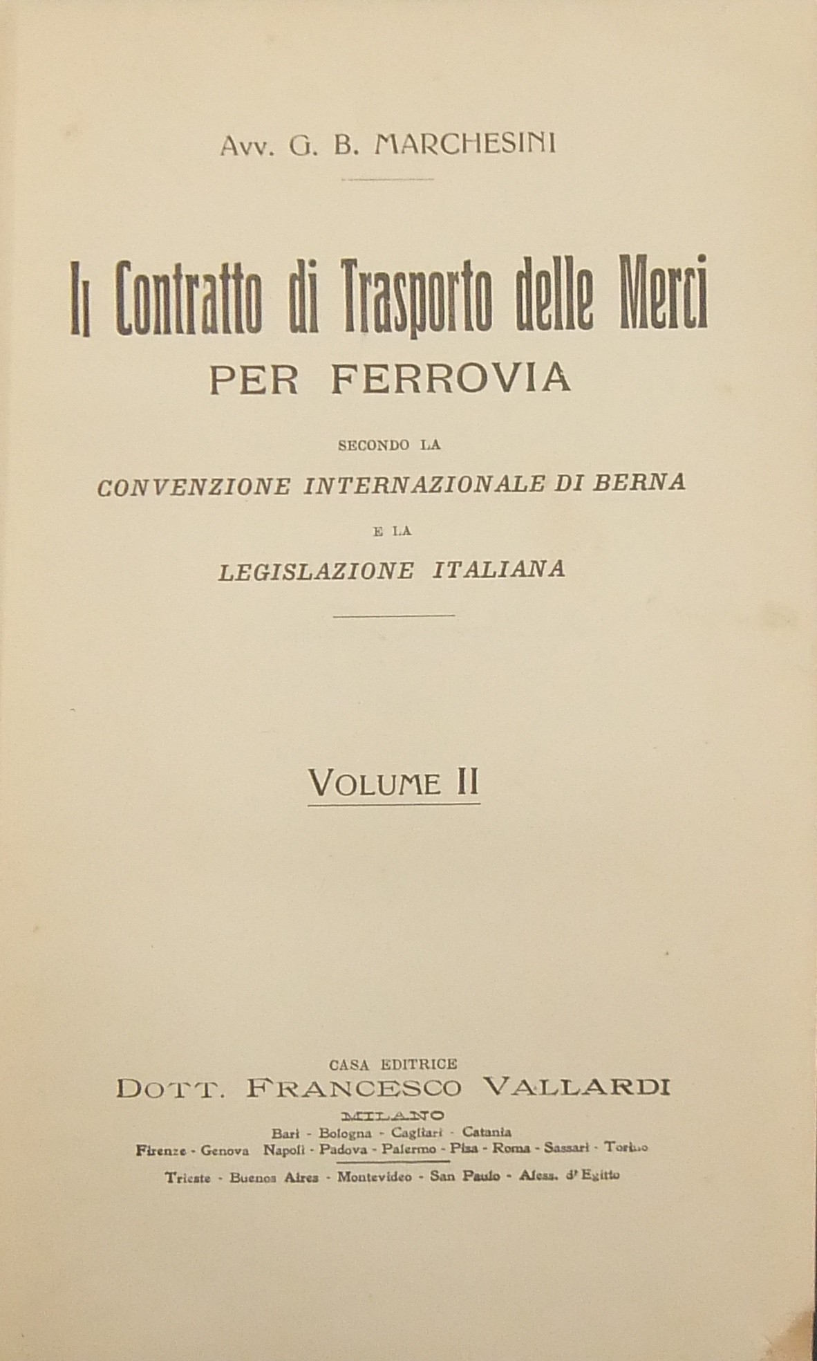 Il contratto di trasporto delle merci per ferrovie secondo la convenzione internazionale di Berna e la legislazione italiana