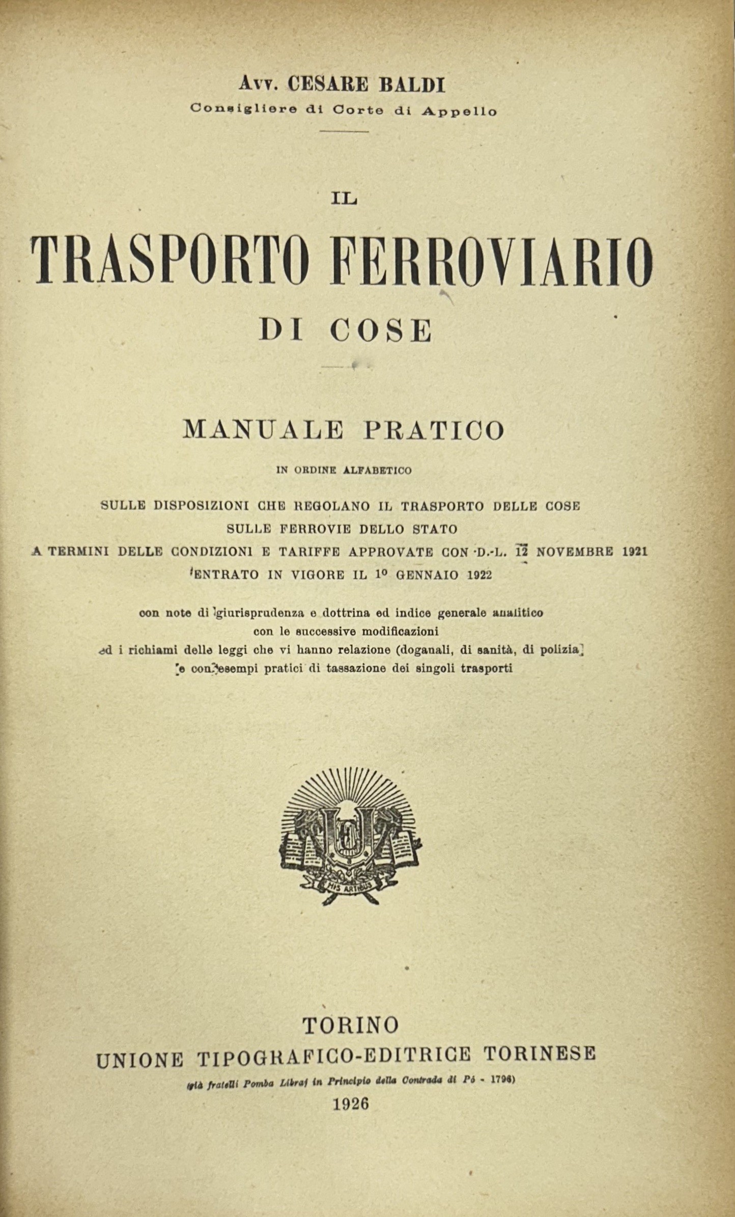 Il trasporto ferroviario di cose. Manuale pratico in ordine alfabetico sulle disposizioni che regolano il trasporto delle cose sulle ferrovie dello Stato a termini delle condizioni e tariffe approvate con D.L. 12 novembre 1921 entrato in vigore il 1° gennaio 1922