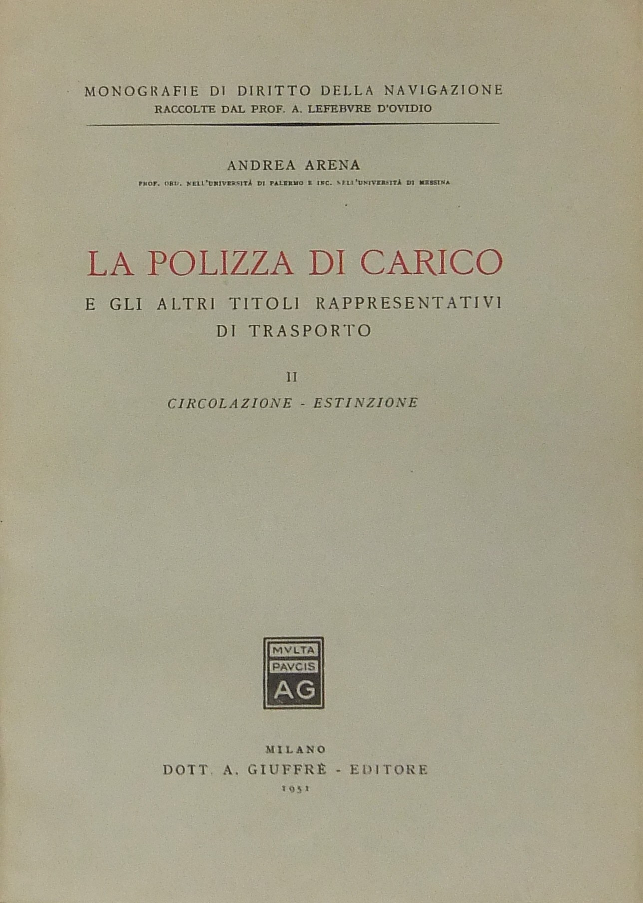 La polizza di carico e gli altri titoli rappresentativi di trasporto. Vol. I - Introduzione. Contratto di trasporto e titolo rappresentativo di trasporto. Emissione del titolo; Vol. II - Circolazione. Estinzione