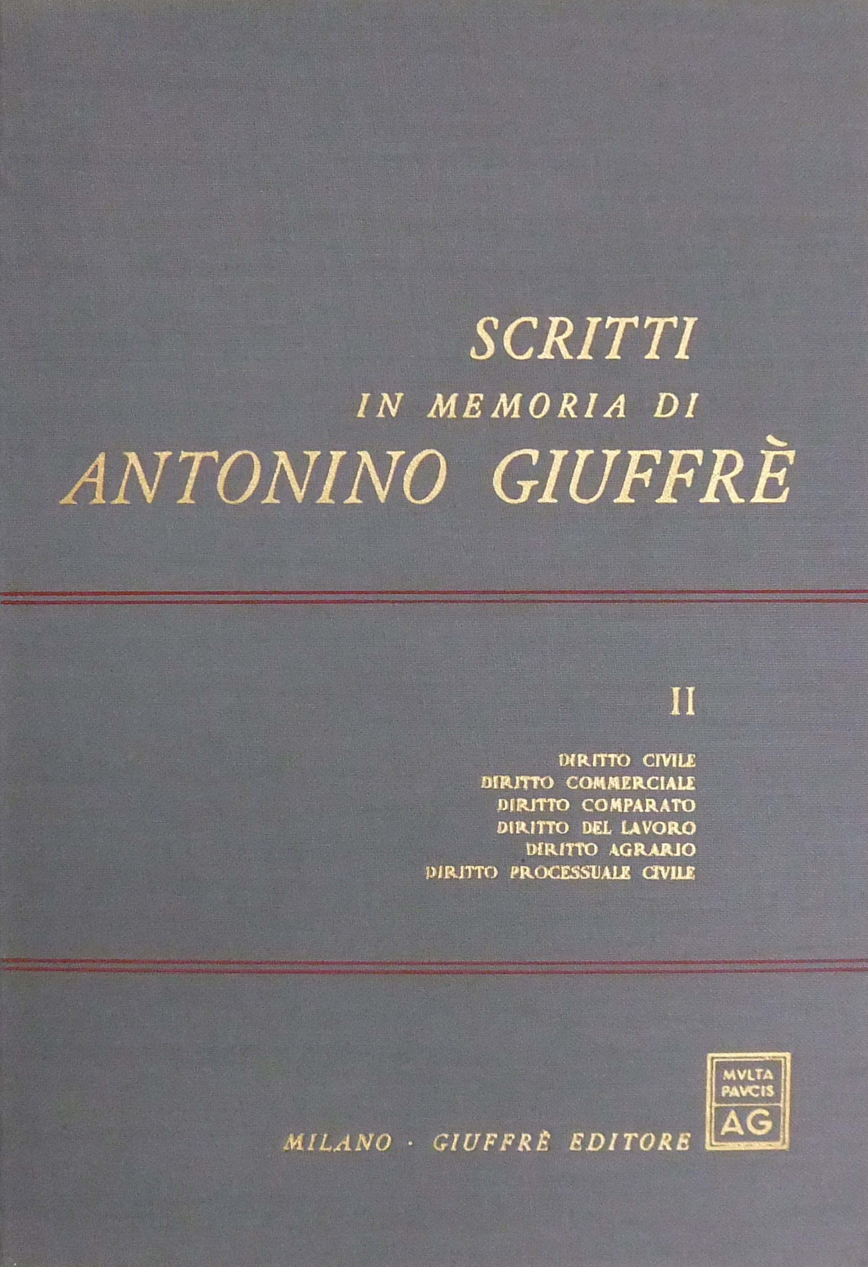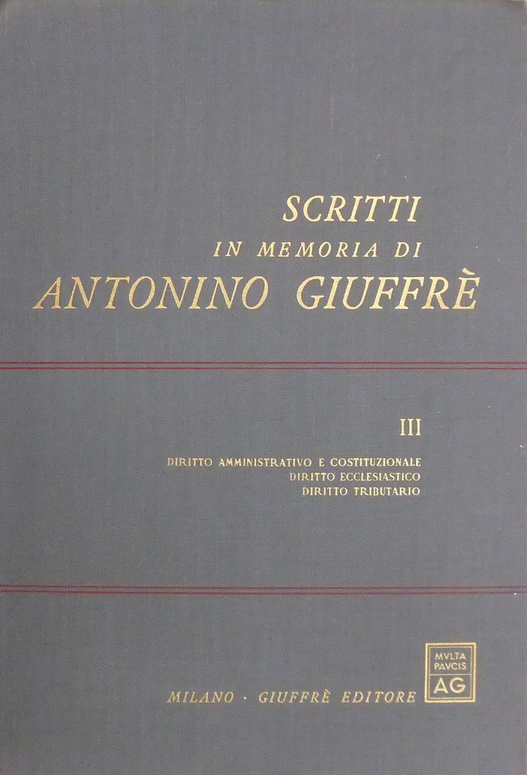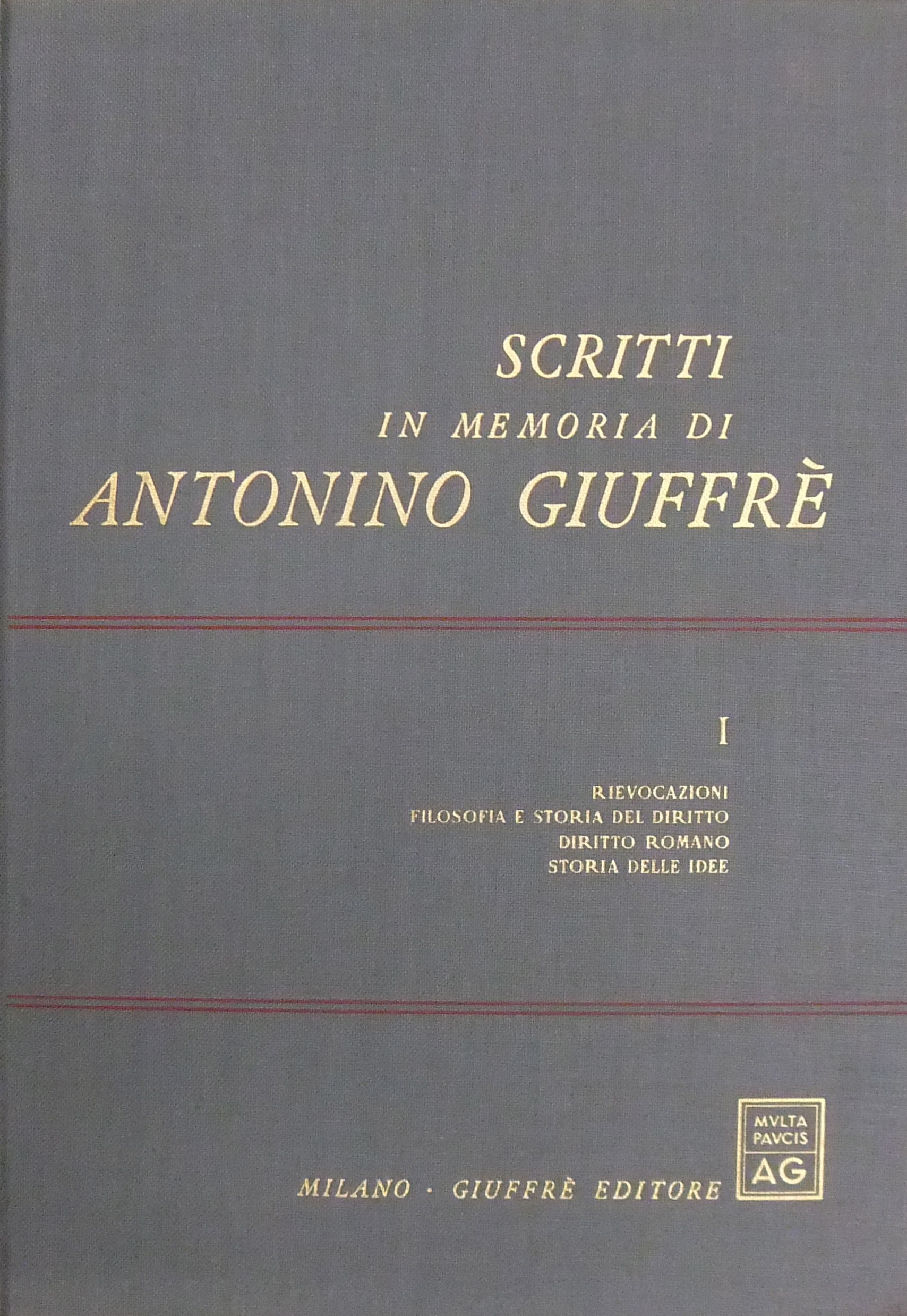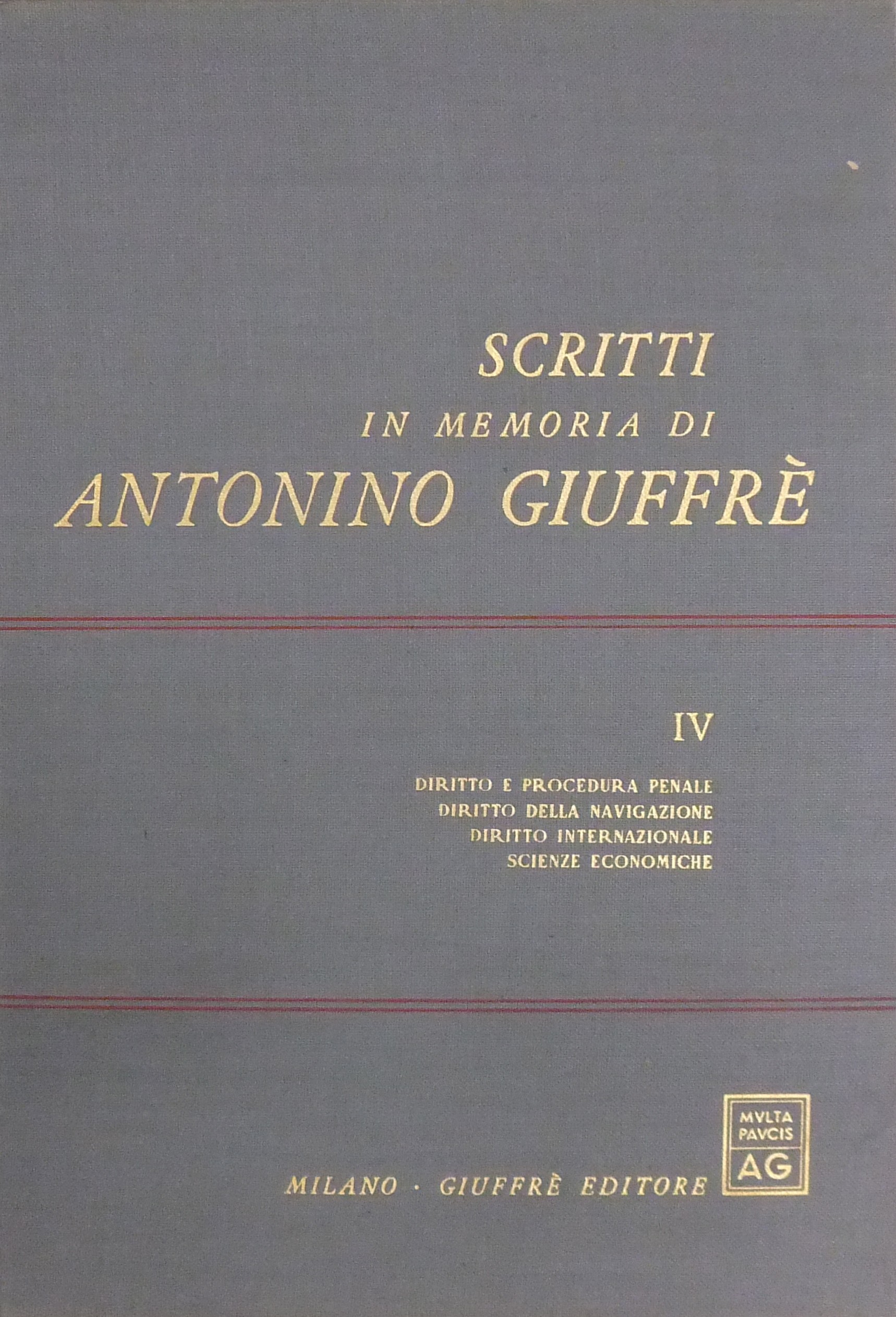 Scritti in memoria di Antonino Giuffrè. Vol. I - Rievocazioni. Filosofia e storia del diritto. Diritto romano. Storia delle idee. Vol. II - Diritto civile. Diritto commerciale. Diritto comparato. Diritto del lavoro. Diritto agrario. Diritto processuale civile. Vol. III - Diritto amministrativo e costituzionale. Diritto ecclesiastico. Diritto tributario. Vol. IV - Diritto e procedura penale. Diritto della navigazione. Diritto internazionale. Scienze economiche