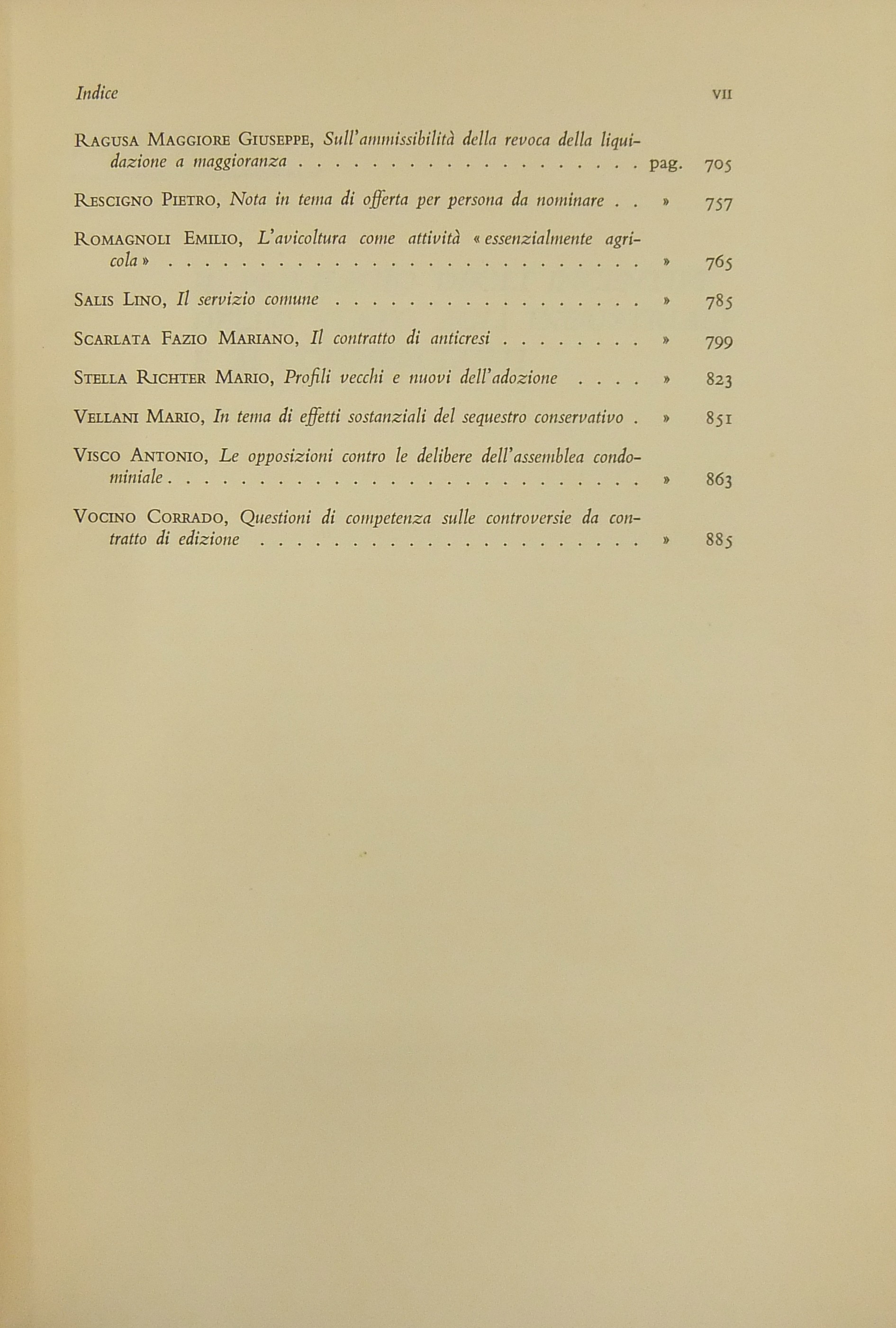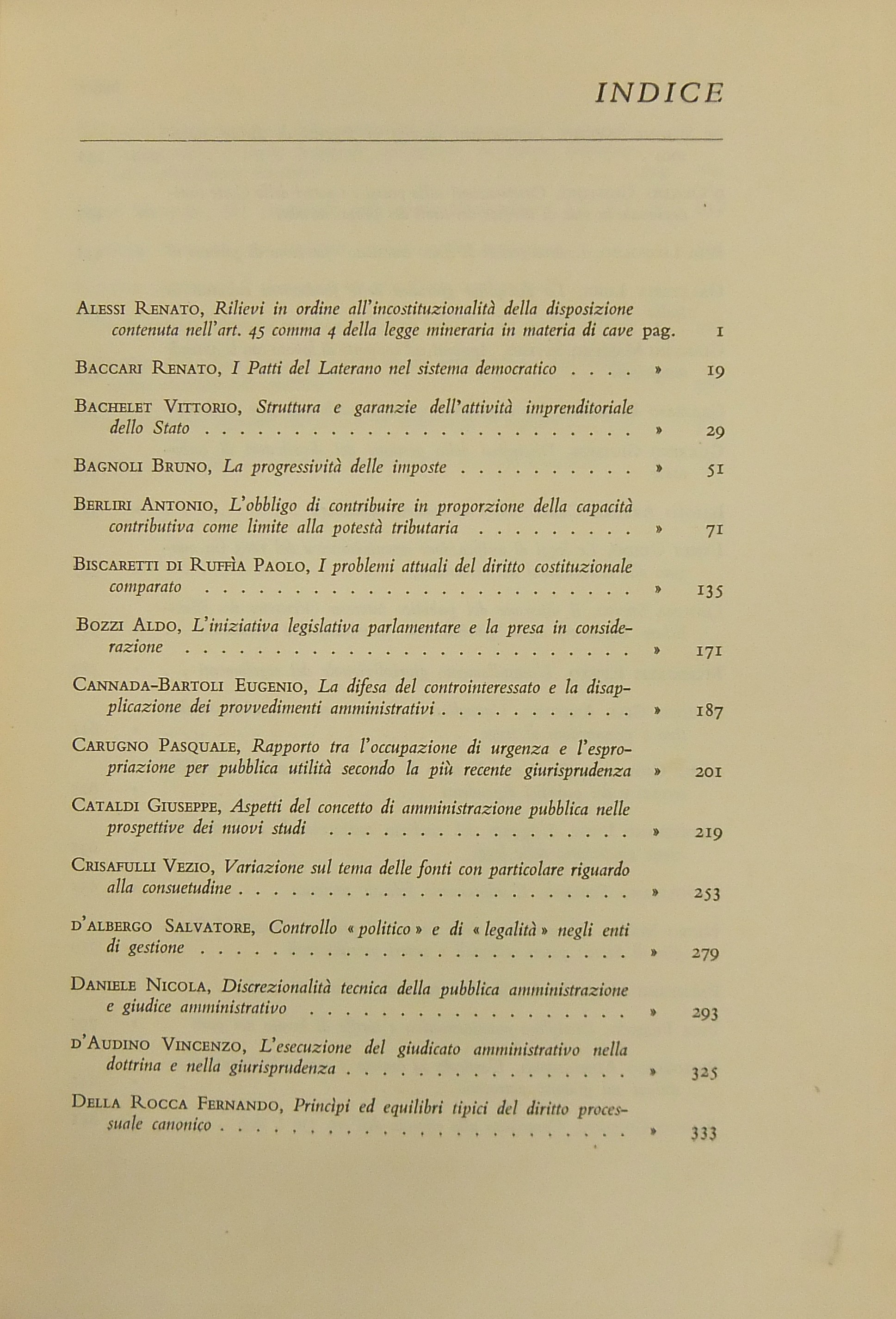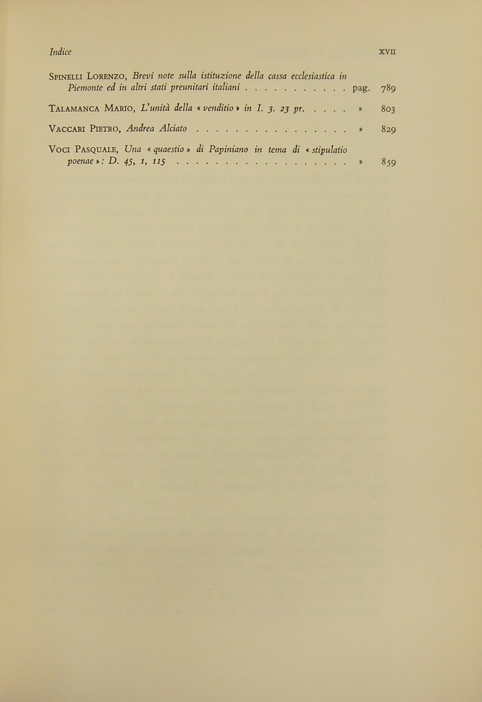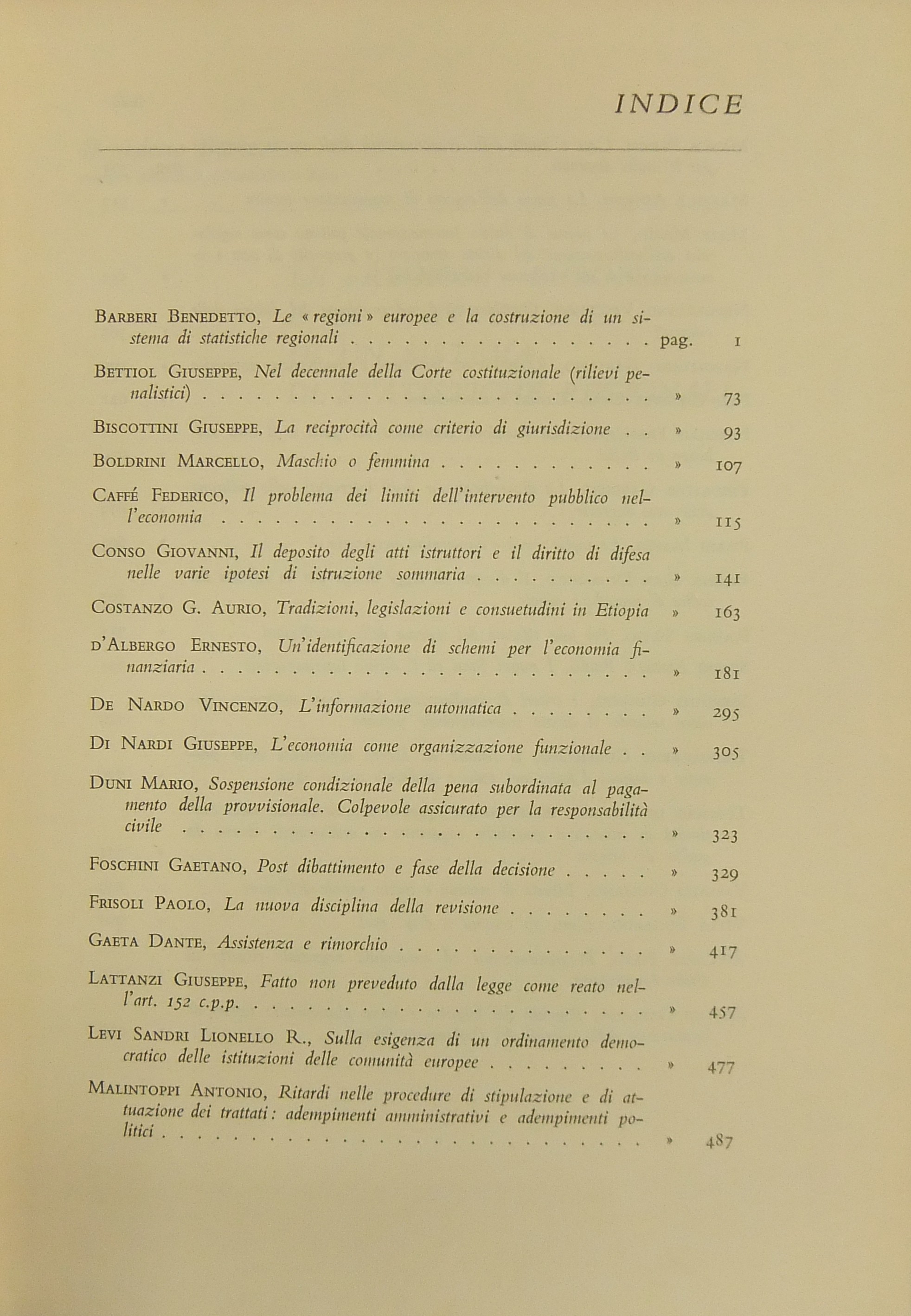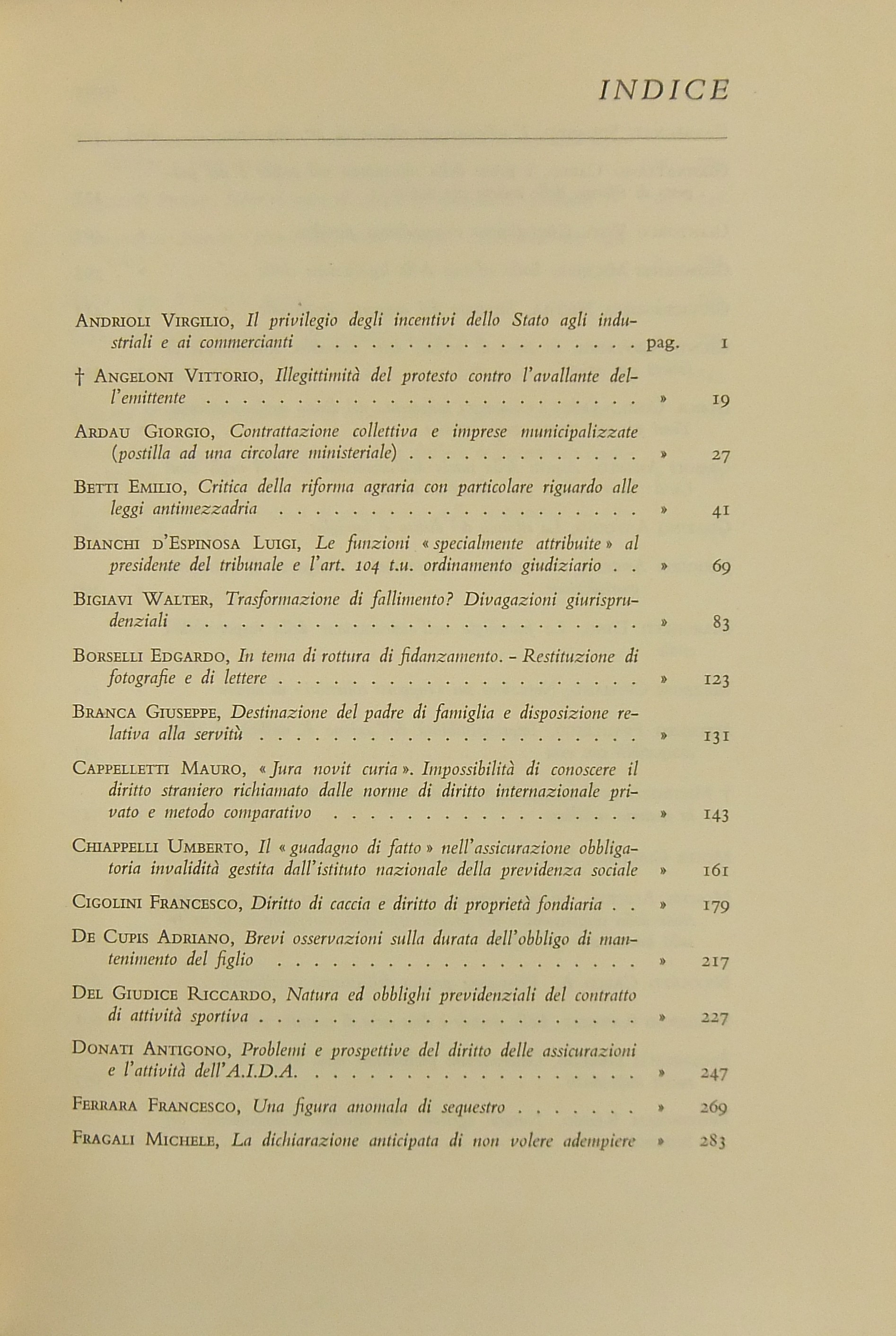 Ritratto fotografico di Giuffrè a inizio opera. Nel primo volume scritti di: Ambrosetti, Battaglini, Biondi, Biscardi, Bobbio, Cammarata, Colorni, Crifò, Curcio, Dal Pane, De Dominicis, De Francisci, V. Del Giudice, De Mattei, Fedele, Fiorelli, Flore, V. Frosini, Ghisalberti, Giovenco, Grosso, Gualazzini, Jacchia, Lenti, Longo, Maschi, Mercadante, Mor, Napolitano, Nardi,  Nasalli, Nocera, Perticone, Rasi, Scherillo, Spinelli, Talamanca, Vaccari, Voci. Nel secondo volume: Andrioli, Angeloni, Ardau, Betti, Bianchi d'Espinosa, Bigiavi, Borselli, Branca, Cappelletti, Chiappelli, Cigolini, De Cupis, R. Del Giudice, A. Donati, F.Ferrara, Fragali, Garbagnati, Giannattasio, Gianturco, M. Giorgianni, Giudiceandrea, Giunta, Gorla, Grisoli, A. Guarino, Jannuzzi, Marchetti, Mazzoni, Messineo, Mistruzzi di Frisinga, Molle, Montel, Nicoletti, Poggeschi, U. Prosperetti, Provinciali, Ragusa Maggiore, P. Rescigno, Romagnoli, Salis, Scarlata Fazio, M. Stella Richter, Vellani, Visco, Vocino. Nel terzo volume: Alessi, Baccari, Bachelet, Bagnoli, Berliri, Biscaretti di Ruffia, Bozzi, Cannada Bartoli, Carugno, Cataldi, V.Crisafulli, S. D'Albergo, Daniele, D'Audino, Della Rocca, De Simone, D'Orazio, Elia, Galateria, M.S.Giannini, Graziani, G. Guarino, Jemolo, Landi, Lessona, Meregazzi, Micheli, G. Miele, Montesano, T. Napolitano, Nigro, Palmerini, Piga, Pizzorusso, Ragno, Rossano, Ruini, A.M. Sandulli, Sciascia, Spadari, Stendardi, G. Stolfi, Villari. Nel quarto volume: Barberi, Bettiol, Biscottini, Boldrini, Caffè, Conso, Costanzo, E. D'Albergo, De Nardo, Di Nardi, Duni, G. Foschini, Frisoli, Gaeta, Lattanzi, Levi Sandri, Malintoppi, Manca, Maresca, M. Miele, Napoletano, G. Napolitano, Papi, Parrillo, G. Pescatore, Pisani, Pisapia, Ranieri, Sereni, Sperduti, Tagliacarne, Tommasi di Vignano, G. Vassalli, Vitta, P. Ziccardi, Zingali.