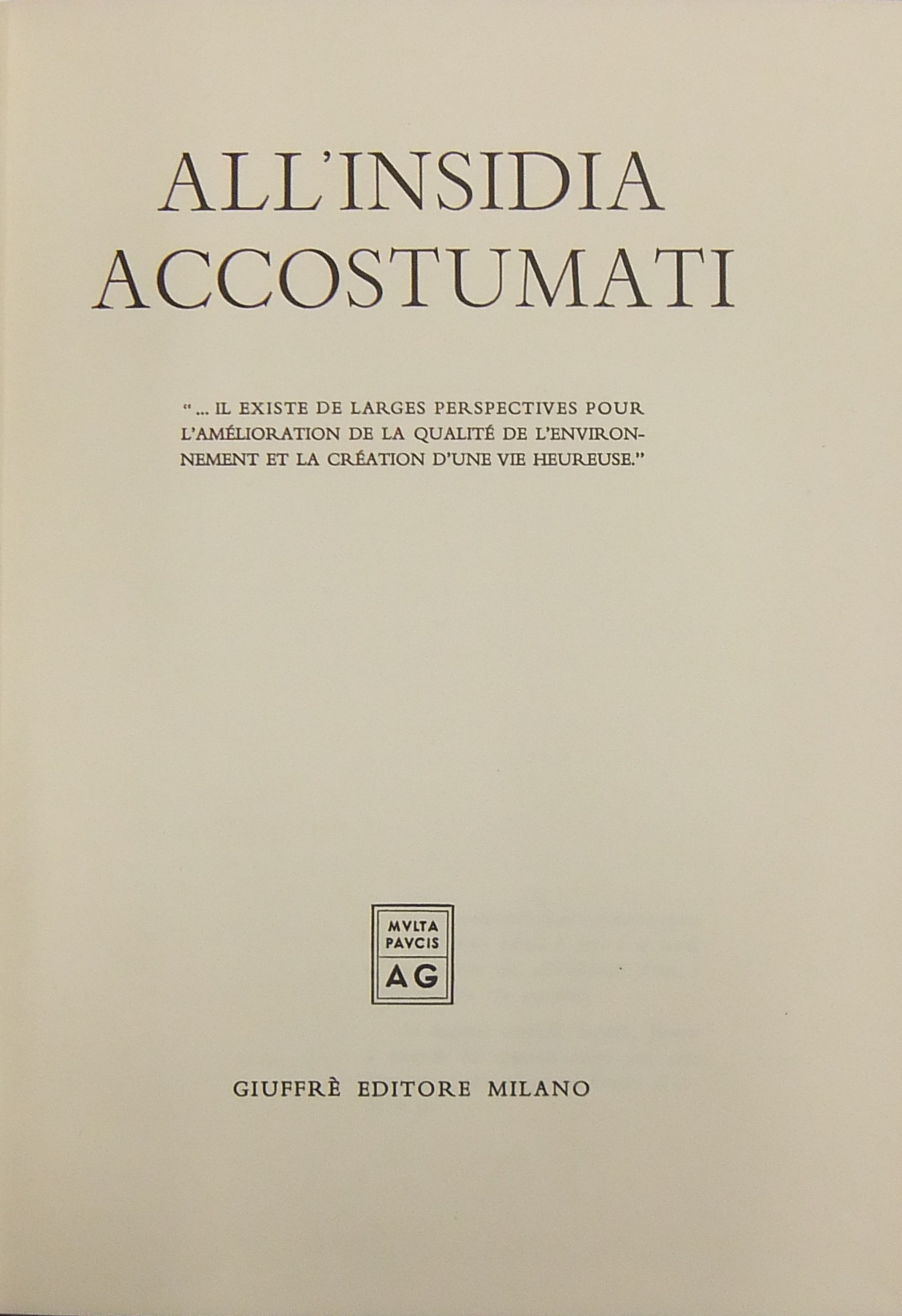 All'insidia accostumati... "Il existe de larges per spectives pour l'amelioration de la qualite de l'environnement et la creation d'une vie heureuse"