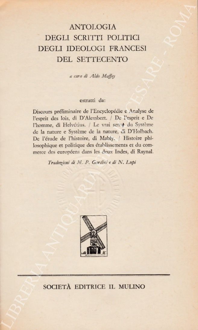 Testi di: D'Alembert, Helvetius, D'Holbach, Mably, Raynal. Traduzioni di M.P. Gardini e N. Lupi