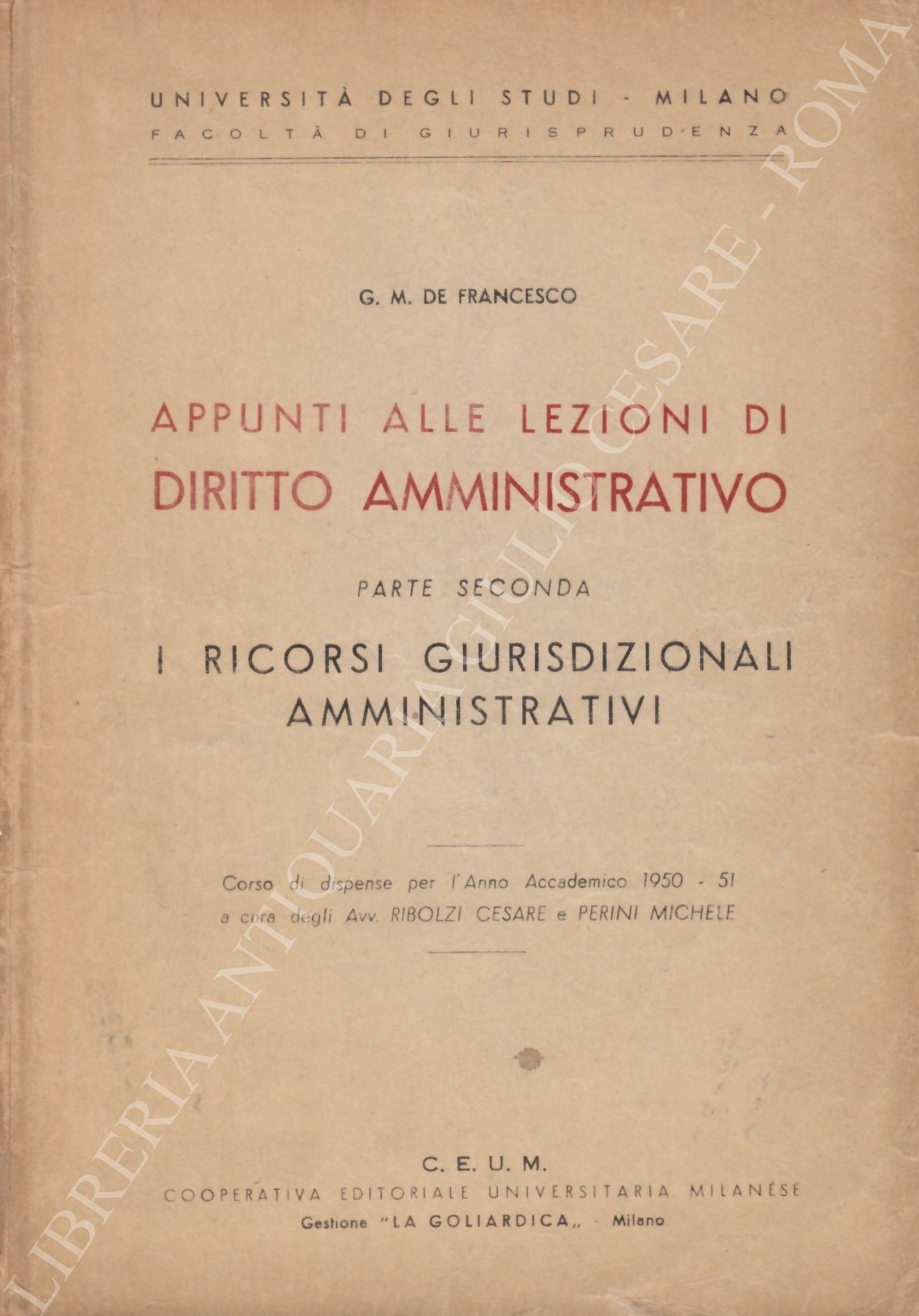 Corso di dispense per l’Anno Accademico 1950-51 a cura degli Avv. Ribolzi Cesare e Perini Michele