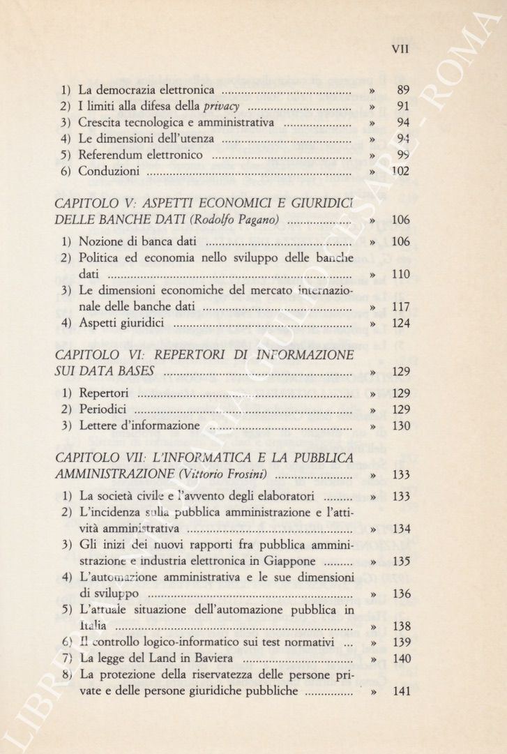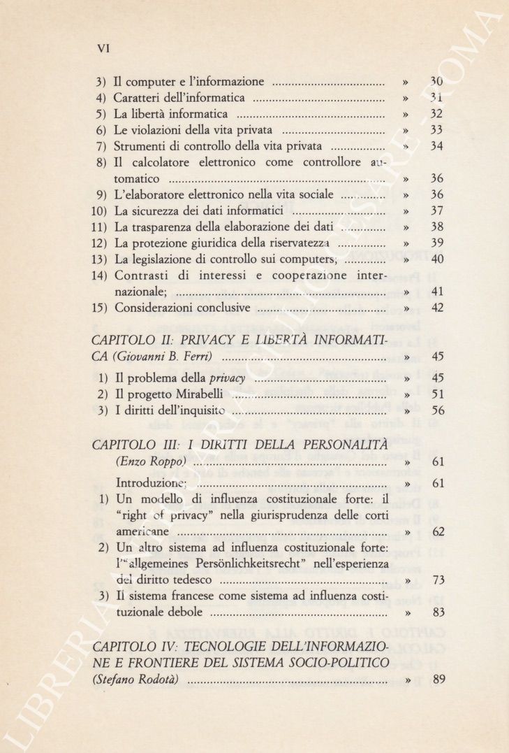 Alpa G. - Bessone M. - Ferri G.B. - Frosini V. - Losano M.G. - Mirabelli G. - Nash D.C. - Pagano R. - Rodotà S. - Roppo E. - Zeno Zencovich V.