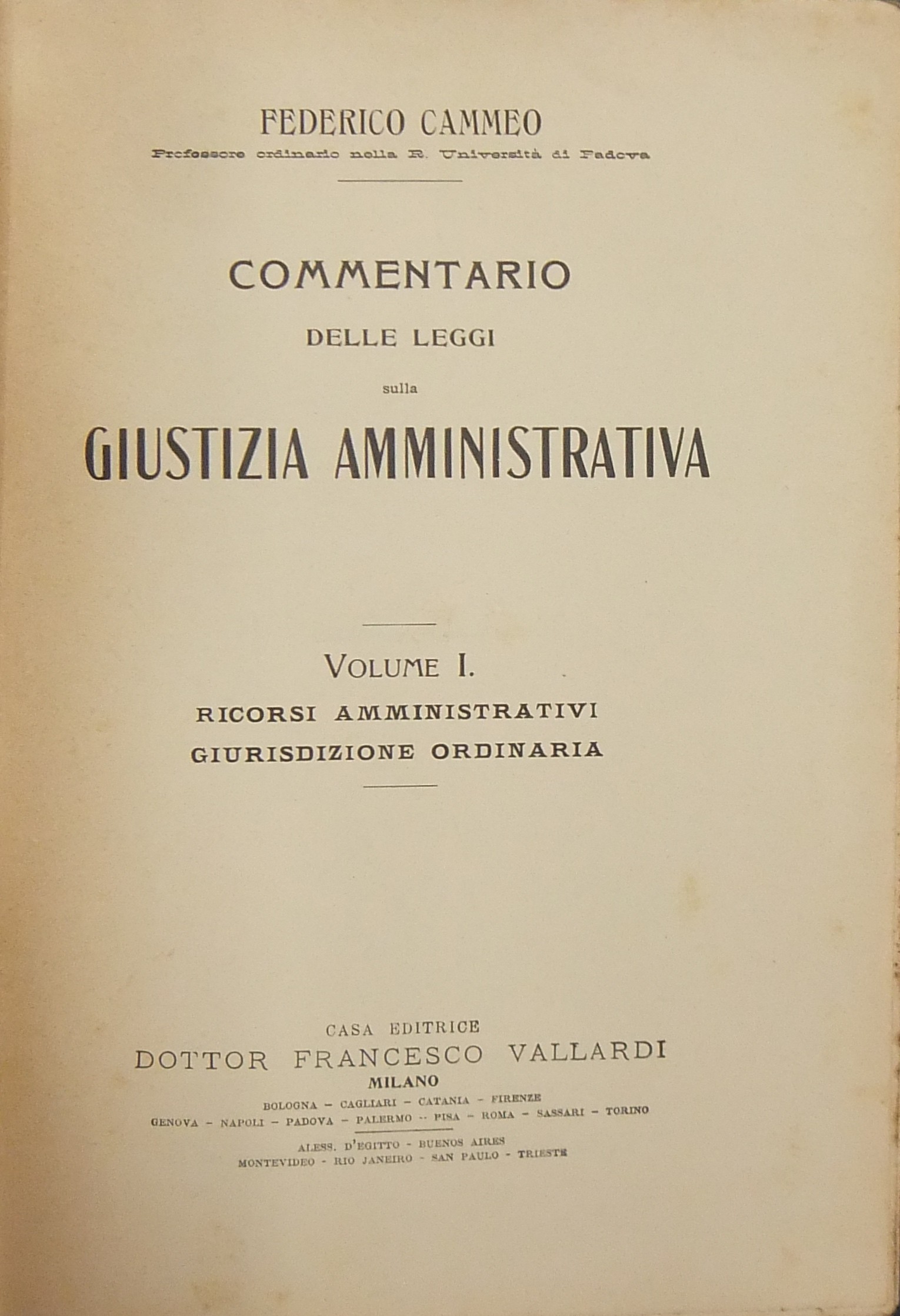 Commentario delle leggi sulla giustizia amministrativa. Vol. I (unico pubblicato) - Ricorsi amministrativi. Giurisdizione ordinaria
