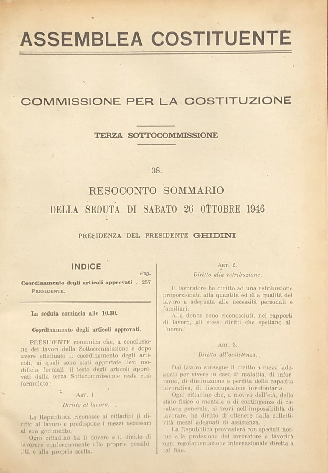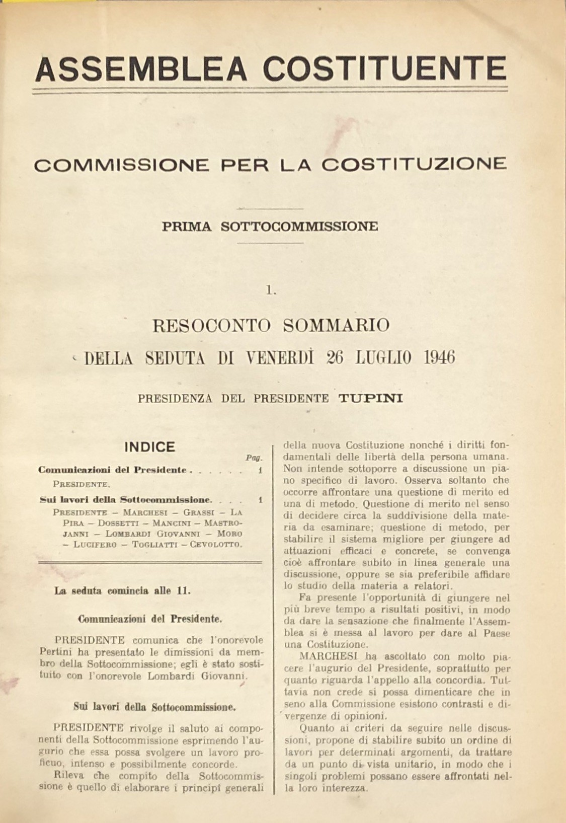 Assemblea Costituente. Commissione per la Costituzione. Prima sottocommissione. Resoconto sommario della seduta di venerdì 26 luglio 1946 (fino al 19 Dicembre 1946). UNITO A: Commissione per la Costituzione. Terza sottocommissione. Resoconto sommario della seduta di venerdì 26 luglio 1946 (fino al 19 Dicembre 1946). UNITO A: Commissione per la Costituzione. Discussioni. Seconda sottocommissione dal 26 luglio 1946 al 30 gennaio 1947. Terza sottocommissione dal 26 ottobre 1946 al 16 giugno 1947