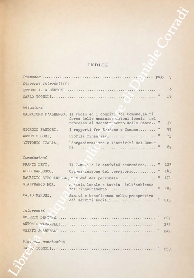 Scritti di: Albertoni, Bardusco, D'Albergo, Dragone, Gori, Italia, Levi, Merusi, Mor, Pastori, Scarpelli, Steccanella, Taramelli, Tognoli