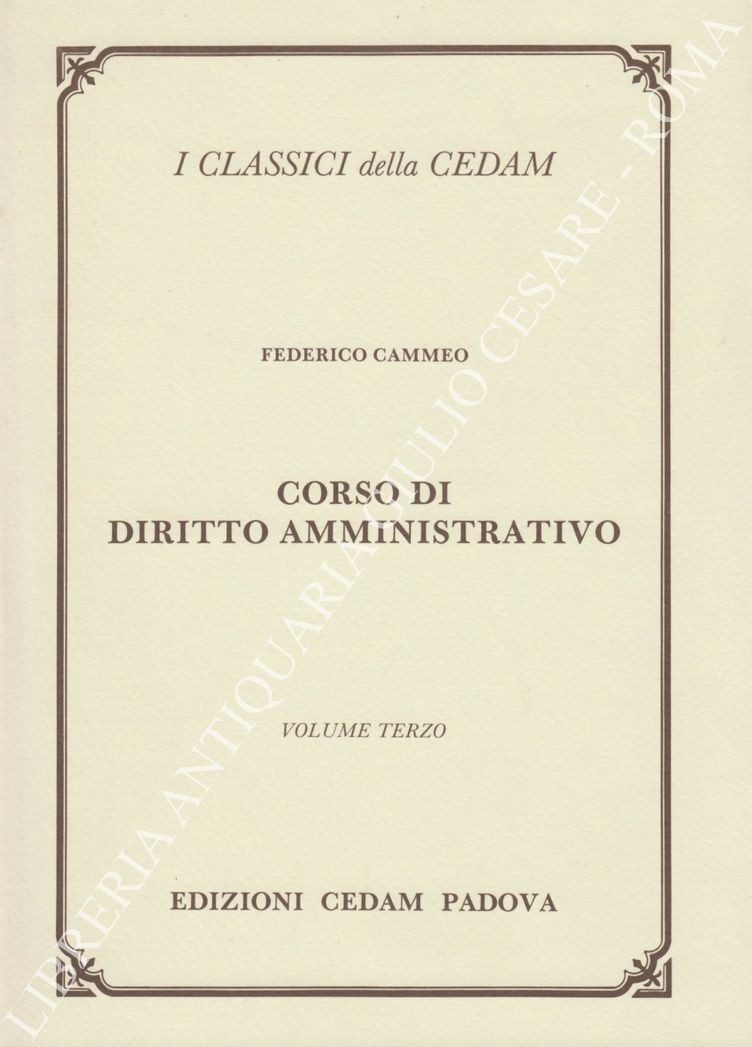 Corso di diritto amministrativo. Prefazione di Massimo Severo Giannini. Vol. I - Introduzione. Il diritto amministrativo obbiettivo (le fonti; contenuto efficacia ed applicazione del diritto obbiettivo). Vol. II - Rapporti giuridici e diritti subbiettivi. I subbietti. Gli oggetti dei rapporti giuridici - (nascita, estensione e modificazione dei rapporti giuridici amministrativi). Vol. III - Atti giuridici dell'amministrazione. Atti giuridici del cittadino. Ricorsi