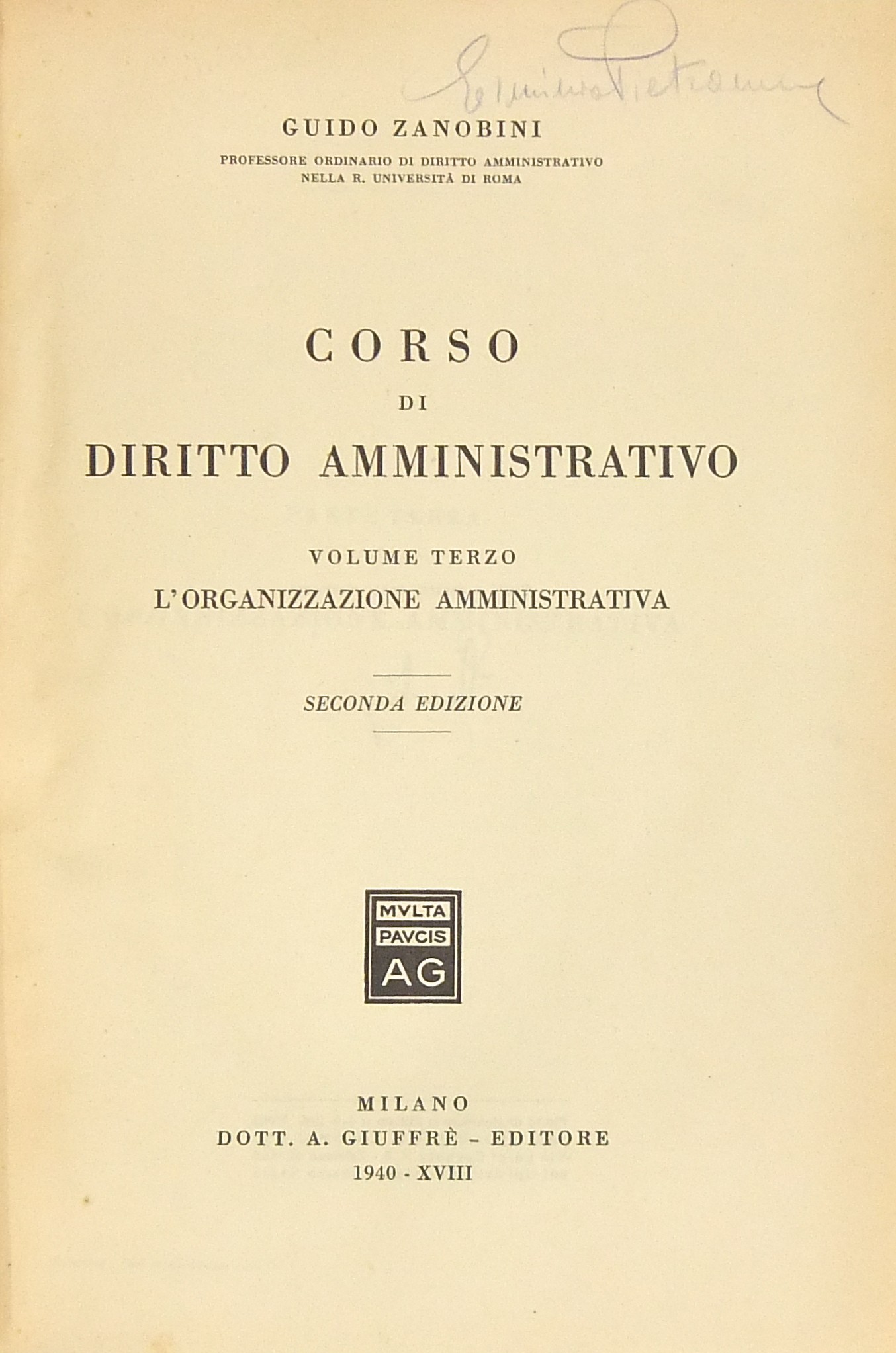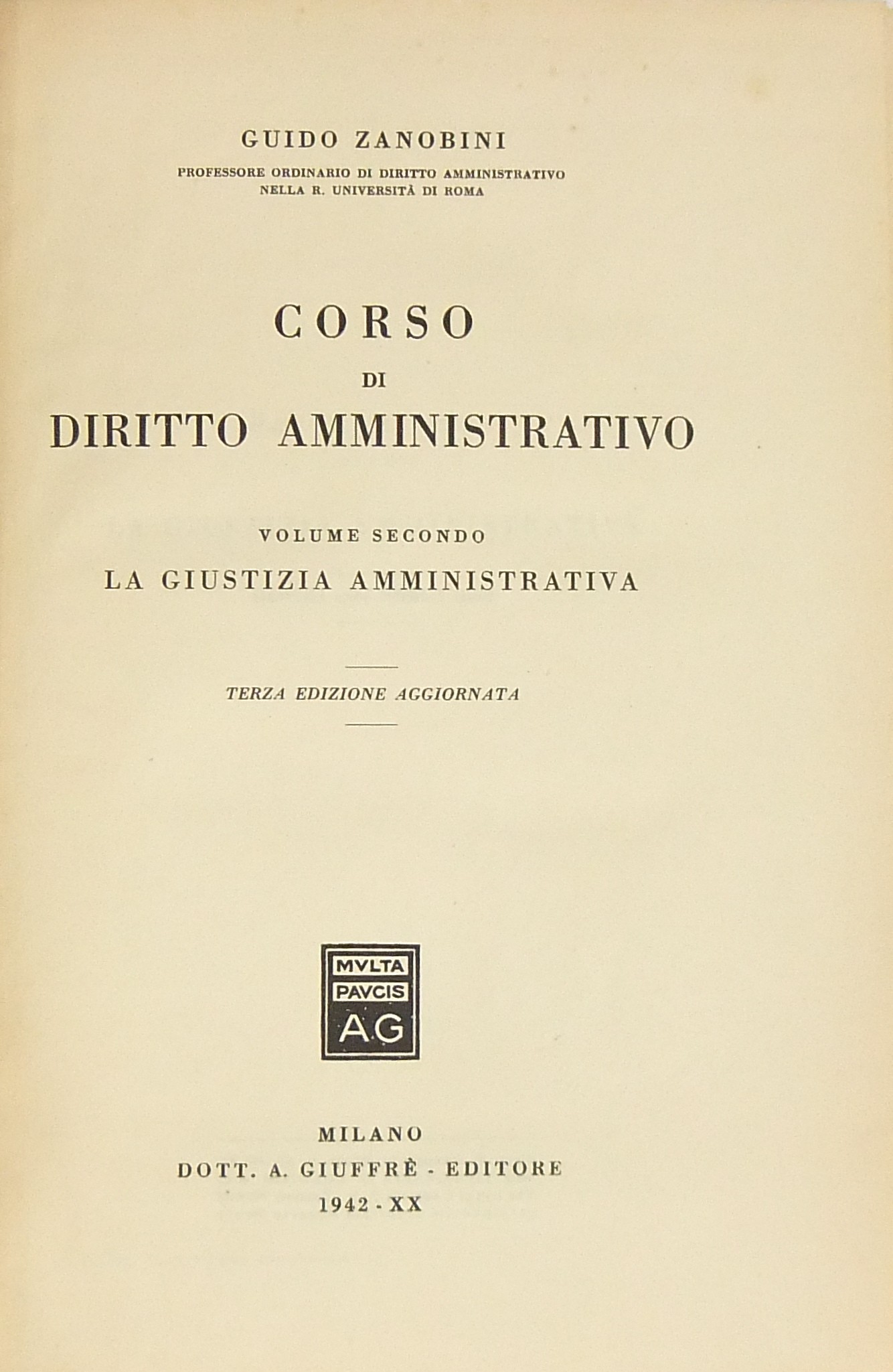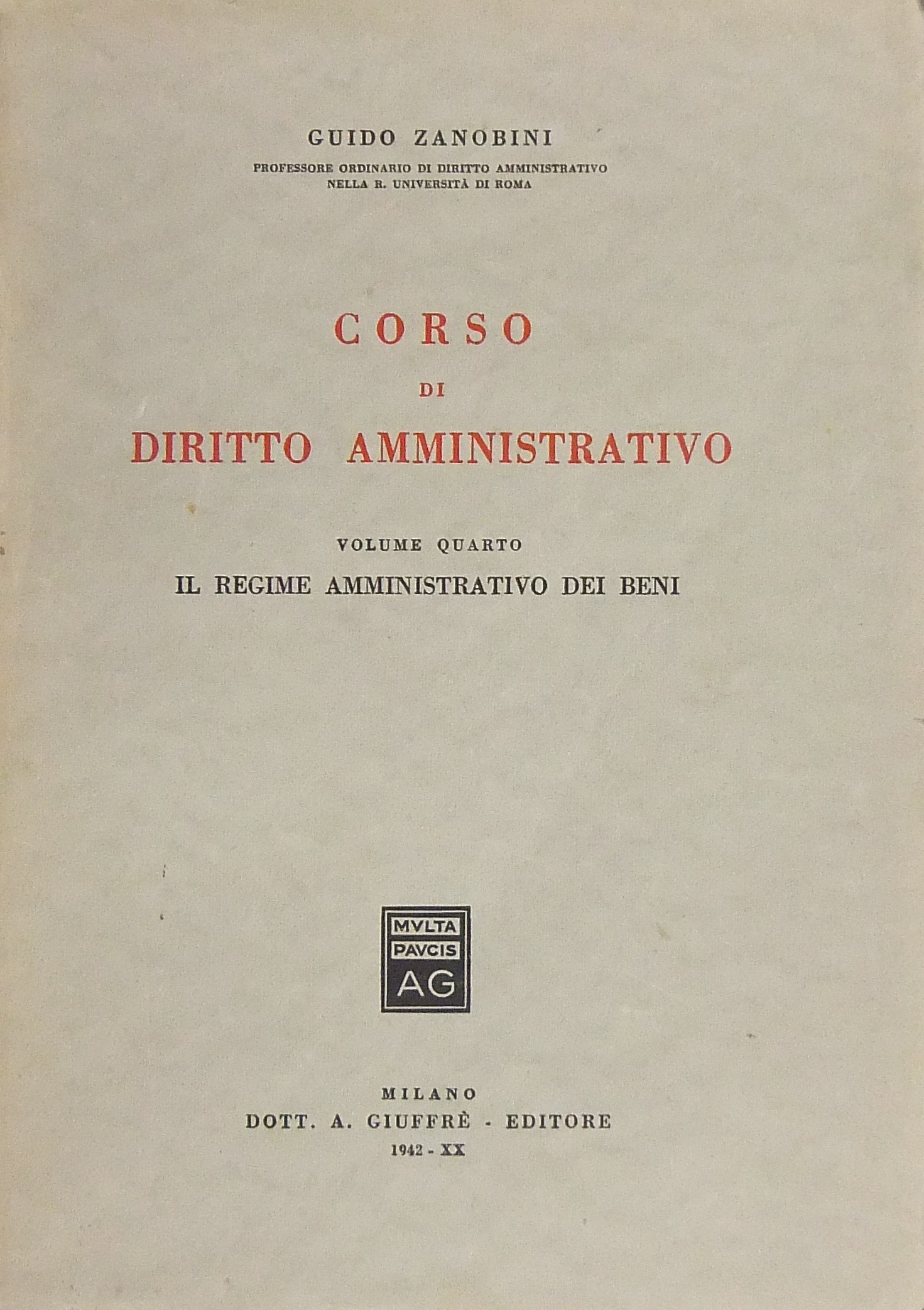 Corso di diritto amministrativo. Vol. I - L'ordinamento amministrativo in generale; Vol. II - La giustrizia amministrativa; Vol. III - L'organizzazione amministrativa; Vol. IV - Il regime amministrativo dei beni