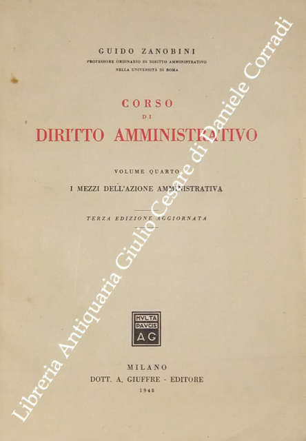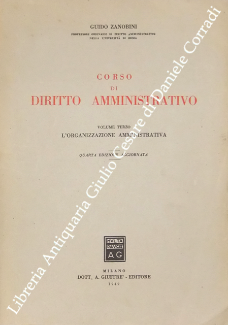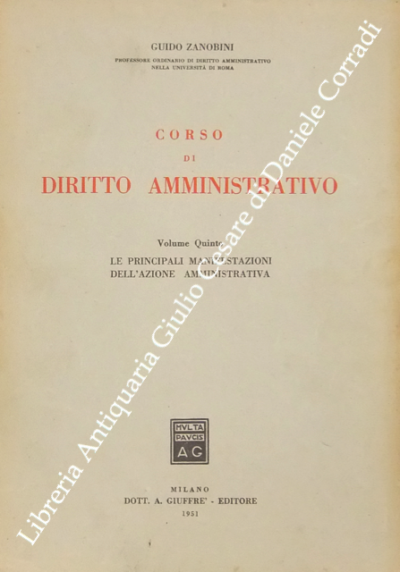 Corso di diritto amministrativo. Vol. I - Principii generali; Vol. II - La giustizia amministrativa; Vol. III - L'organizzazione amministrativa; Vol. IV - I mezzi dell'azione amministrativa; Vol. V - Le principali manifestazioni dell'azione amministrativa