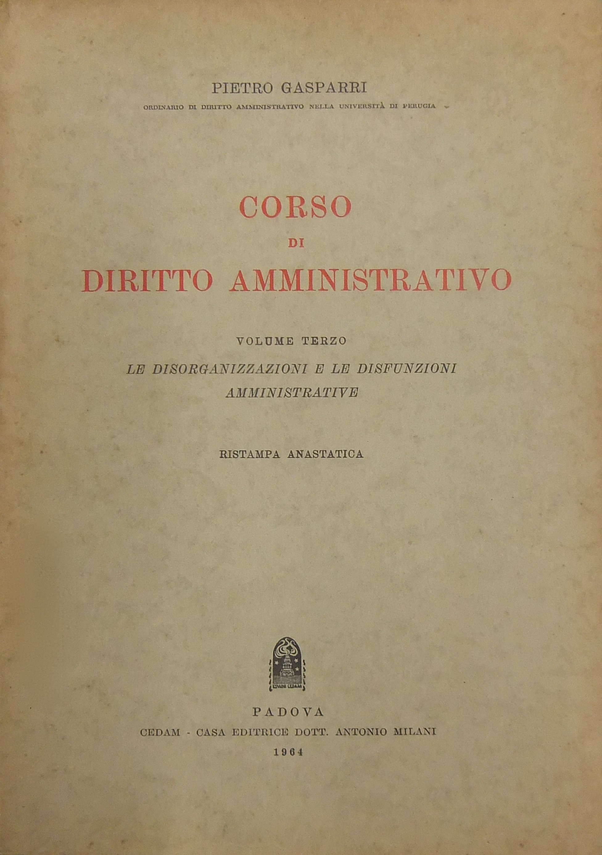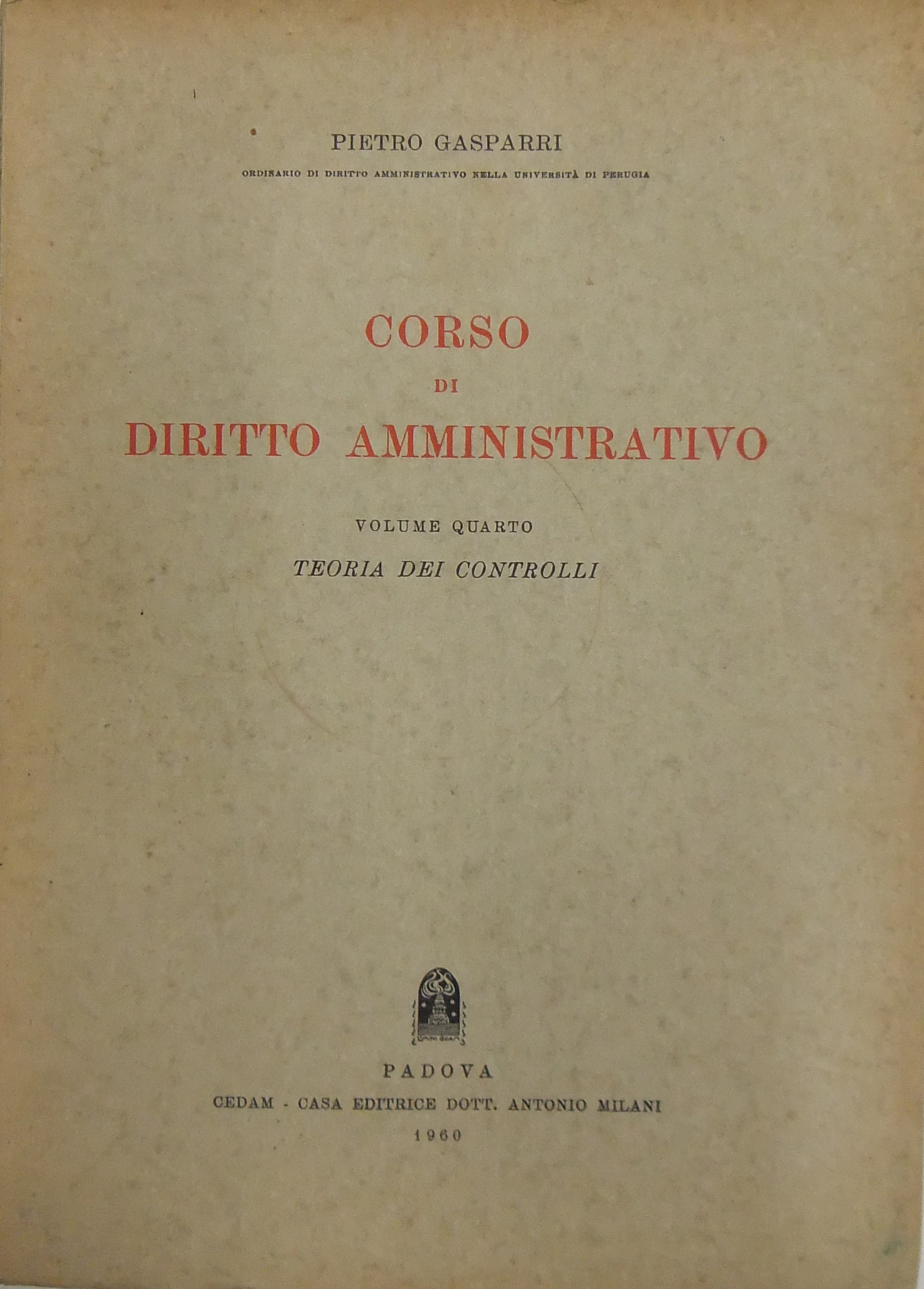 Corso di diritto amministrativo. Vol. I - Teoria della organizzazione amministrativa. Vol. II - La funzione amministrativa. Vol. III - Le disorganizzazioni e le disfunzioni amministrative. Vol. IV - Teoria dei controlli