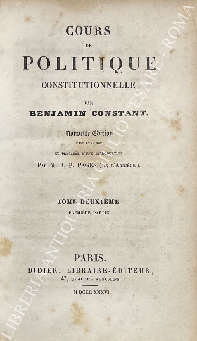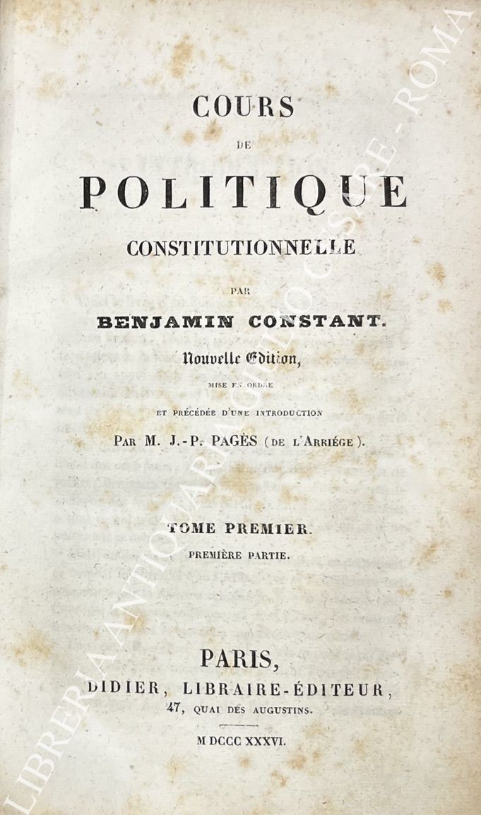 Cours de politique constitutionnelle. Nouvelle édition mise en ordre et précédée d'une introduction par J.-P- Pagés (de l'Arriege)