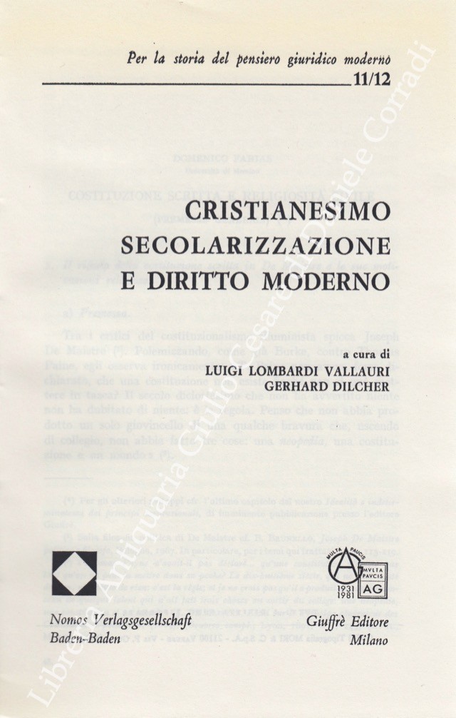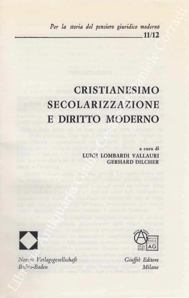 Lombardi Vallauri Luigi e Dilcher Gerhard (a c. di)
