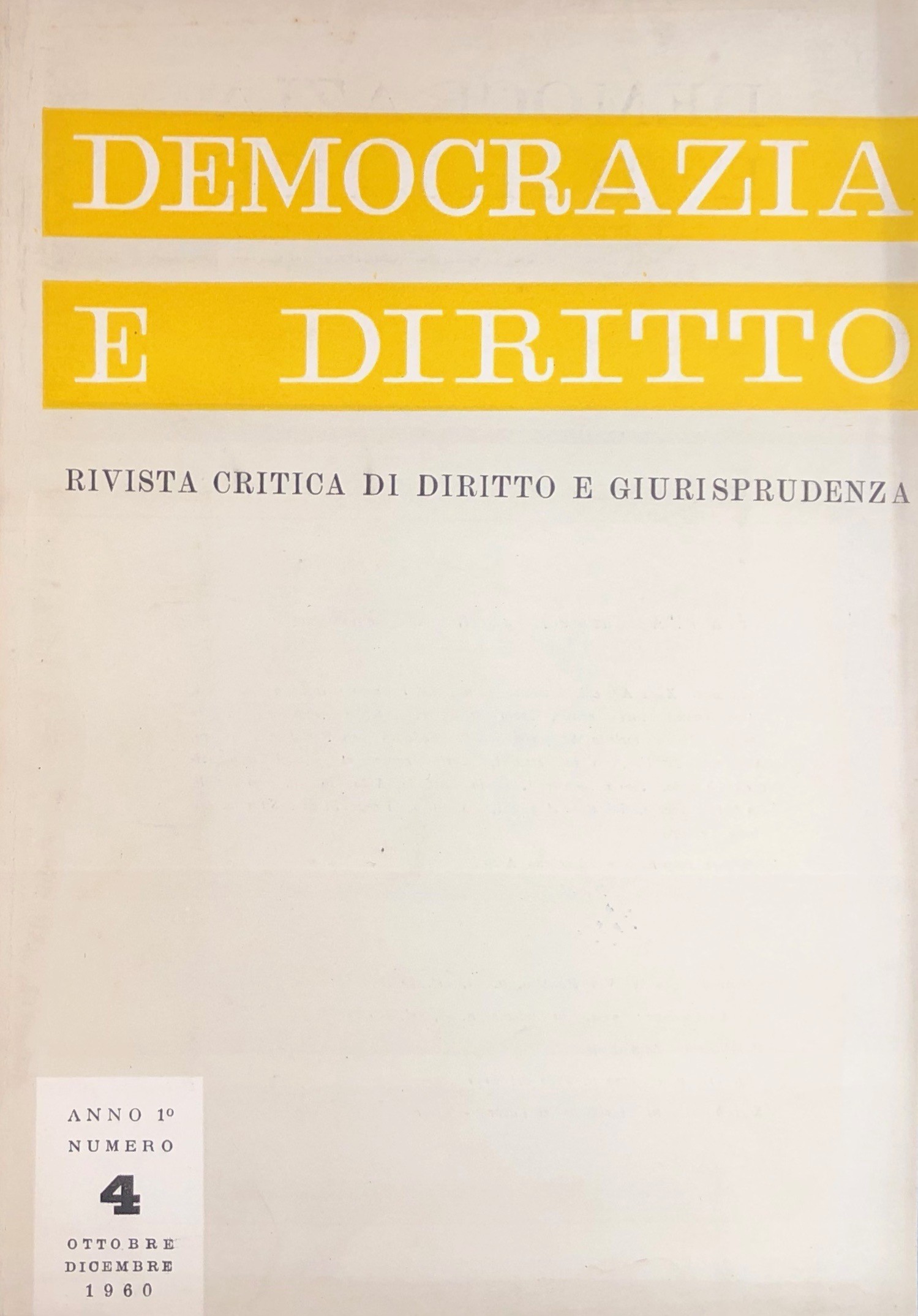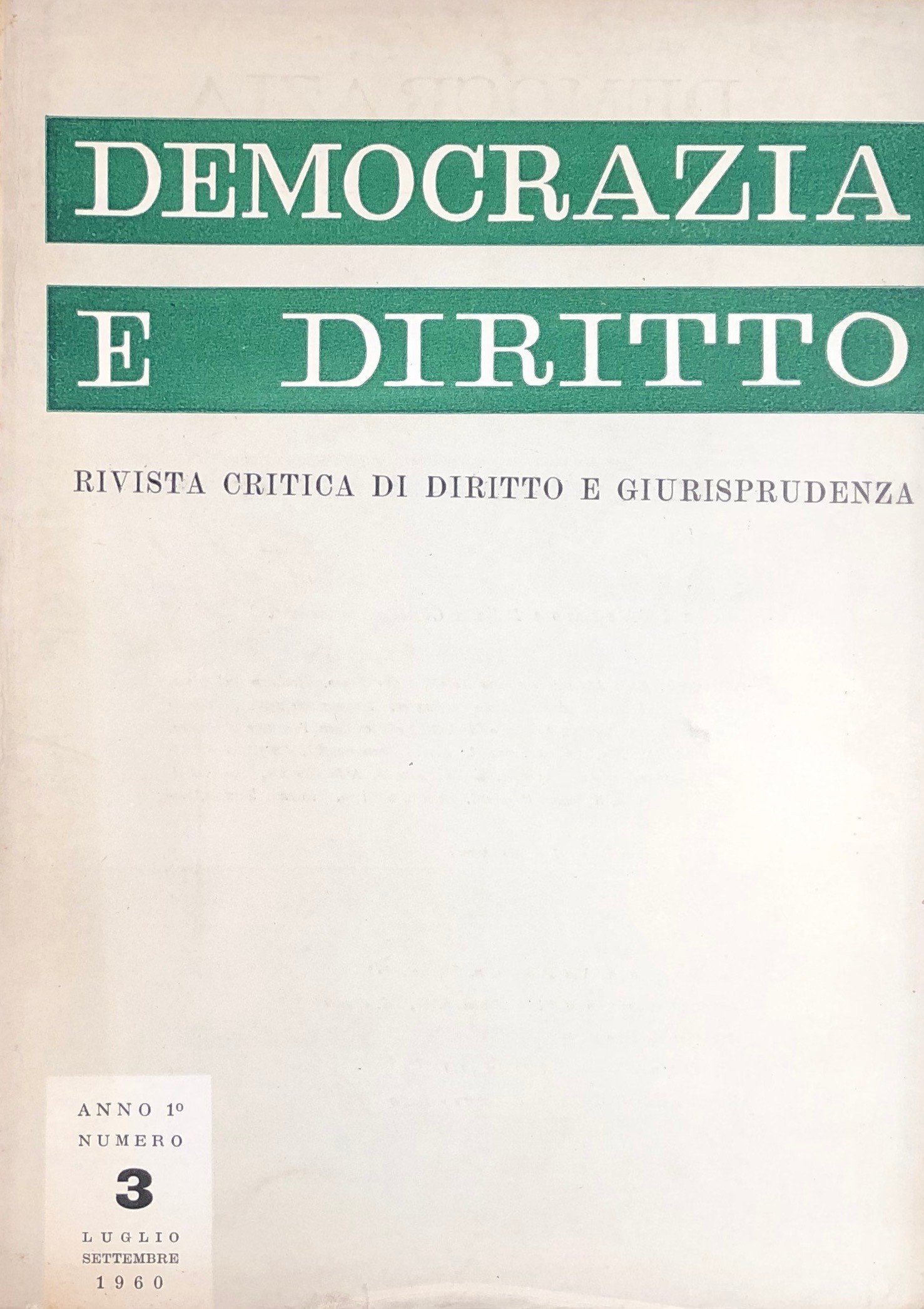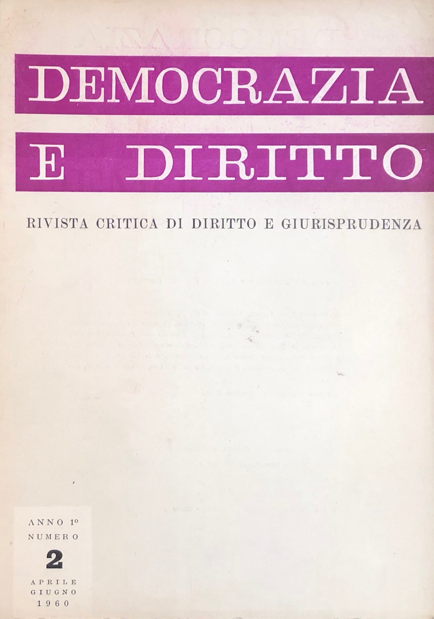 Democrazia e diritto. Rivista Critica di Diritto e Giurisprudenza - Anno I