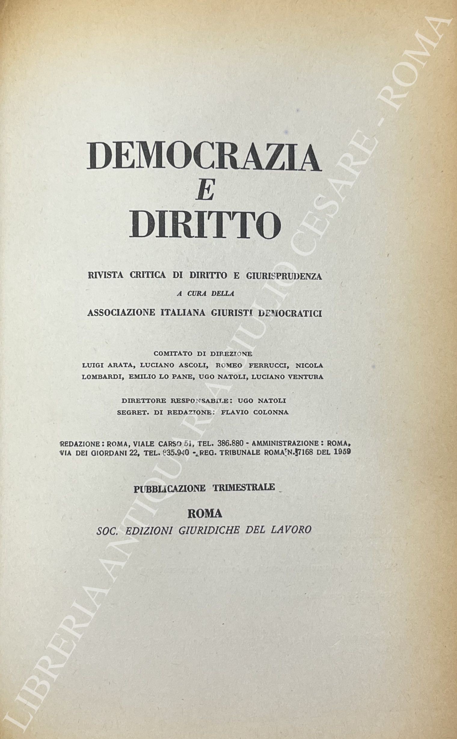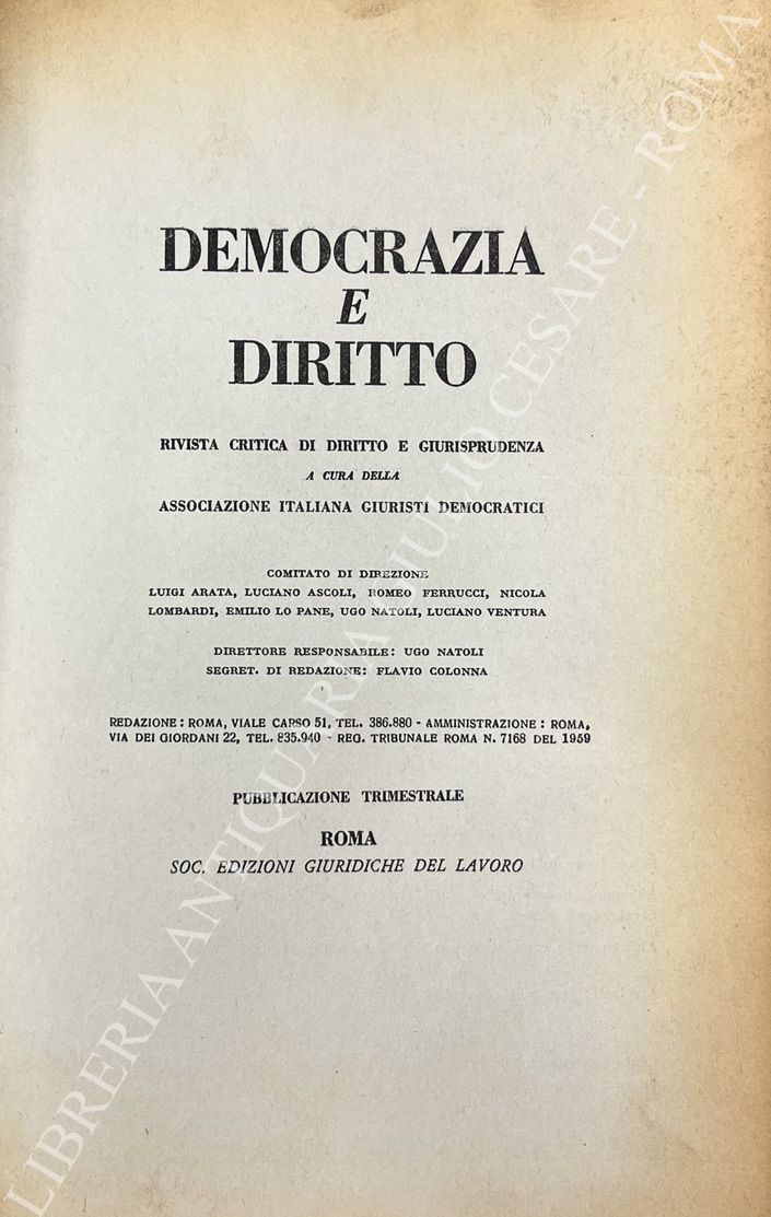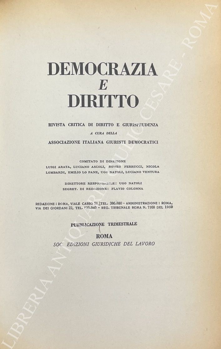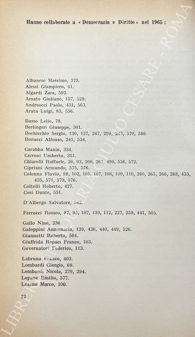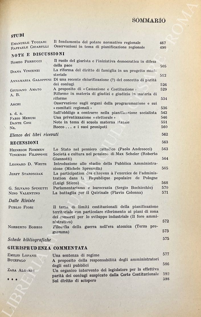Algardi Z. - Amato G. - Basso L. - Berlingeri G. - Chiarelli R. - Labruna F. - Merusi F. - Natoli U. et alii