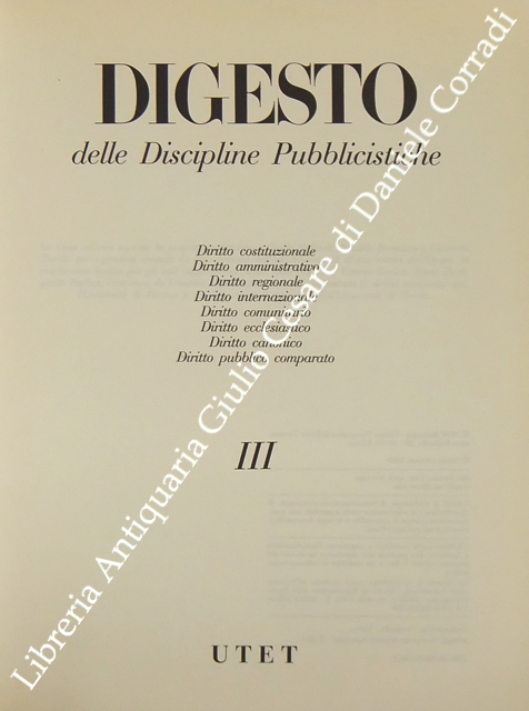 Digesto. Quarta edizione. Presidente del comitato scientifico Rodolfo Sacco. Discipline pubblicistiche. Vol. III