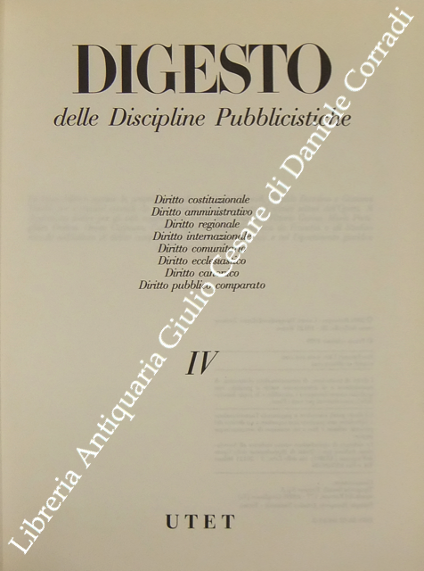 Digesto. Quarta edizione. Presidente del comitato scientifico Rodolfo Sacco. Discipline pubblicistiche. Vol. IV