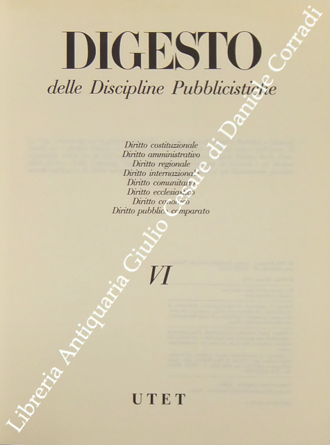 Digesto. Quarta edizione. Presidente del comitato scientifico Rodolfo Sacco. Discipline pubblicistiche. Vol. VI