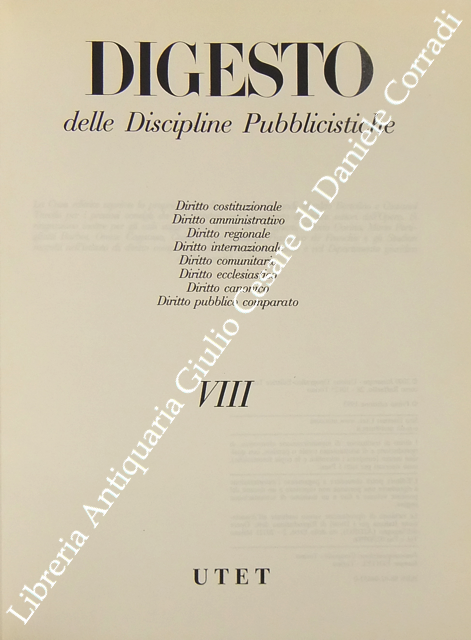 Digesto. Quarta edizione. Presidente del comitato scientifico Rodolfo Sacco. Discipline pubblicistiche. Vol. VIII