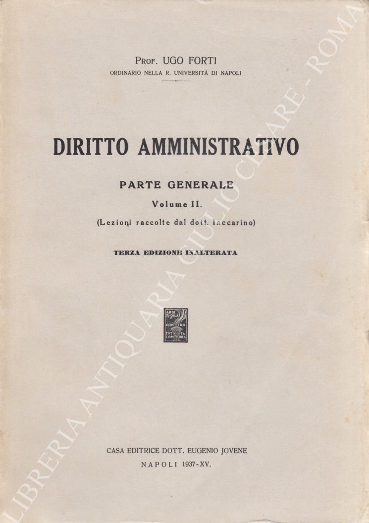 Diritto amministrativo. Parte generale. Vol. I - Lezioni raccolte stenograficamente dal Prof. G. Quitadamo. Vol. II - Lezioni raccolte dal dott. Jaccarino