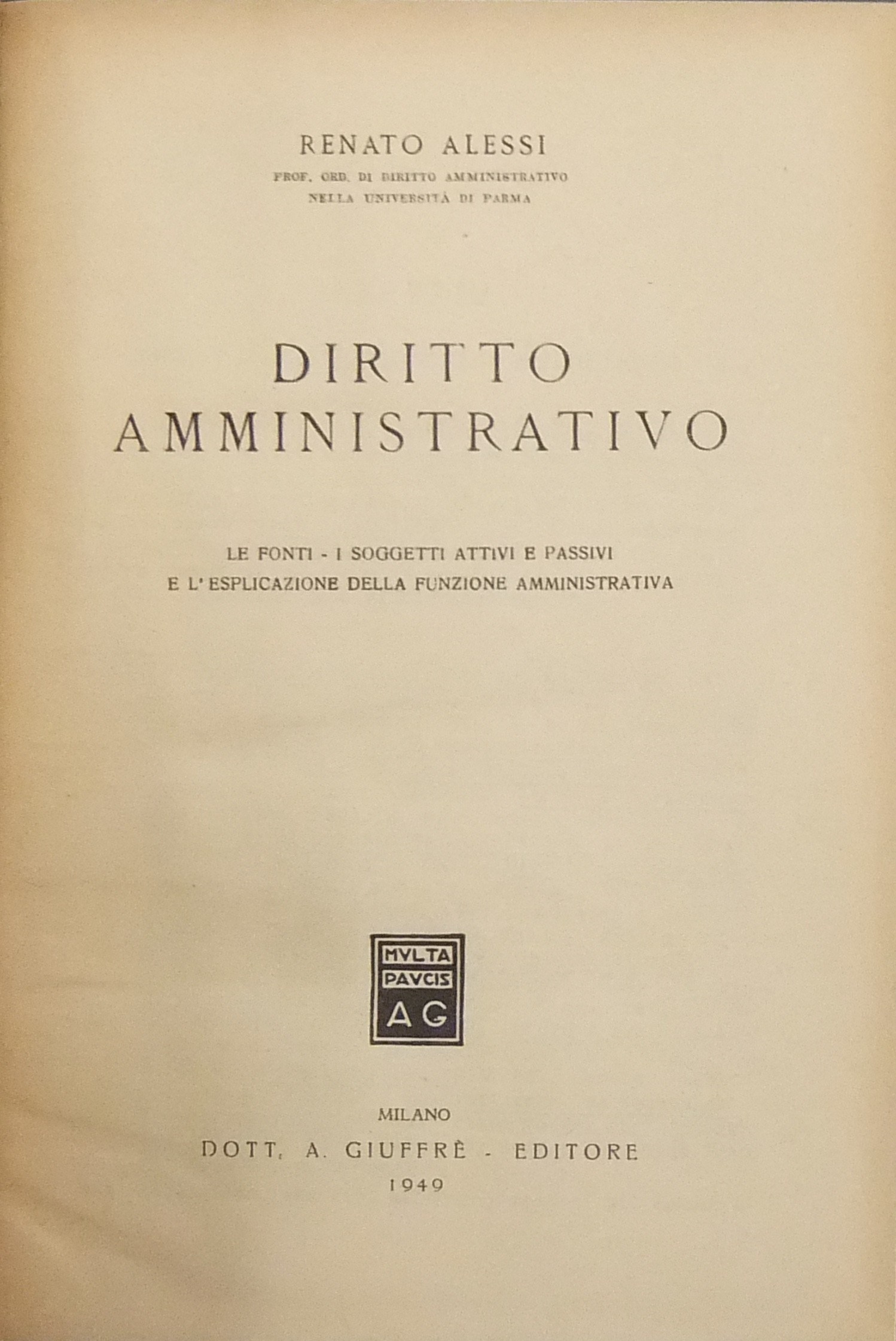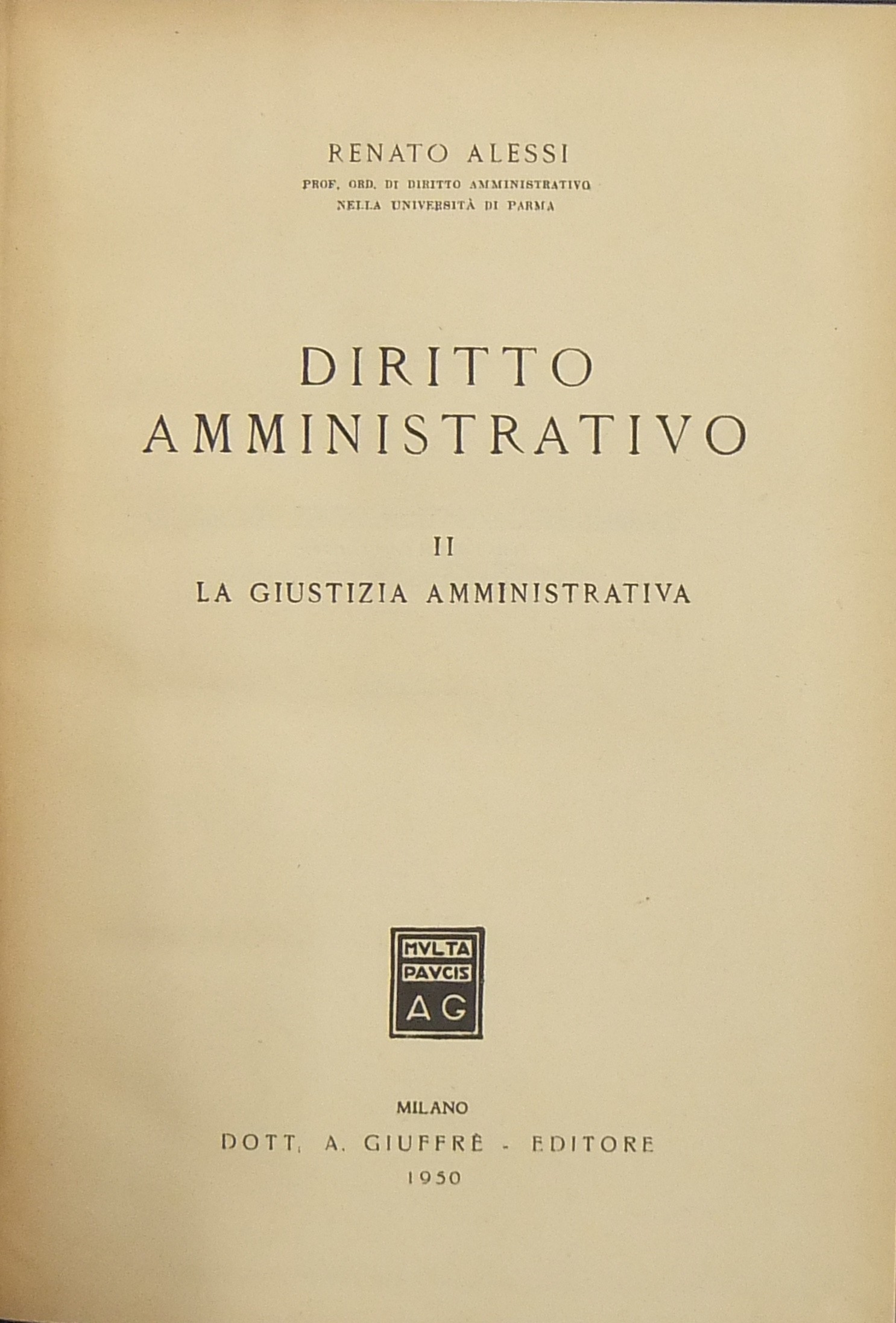 Diritto amministrativo. Vol. I - Le fonti. I soggetti attivi e passivi e l'esplicazione della funzione amministrativa; Vol. II - La giustizia amministrativa