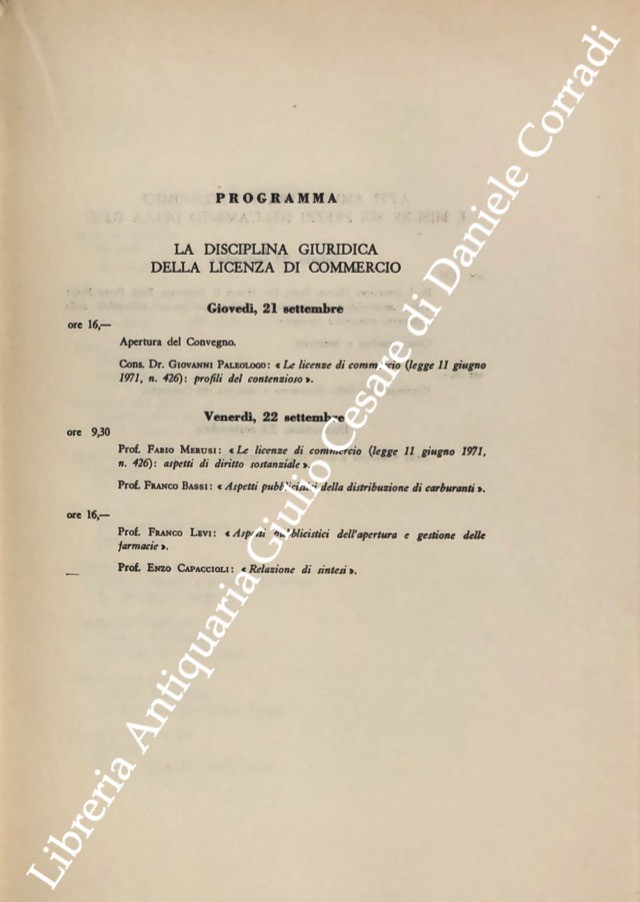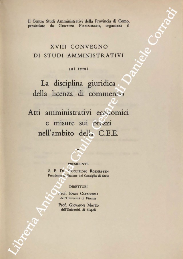La disciplina giuridica della licenza di commercio. Atti amministrativi economici e misure sui prezzi dell'ambito della C.E.E. Atti del XVIII Convegno di Studi di Scienza dell'Amministrazione promosso dall'Amministrazione Provinciale di Como, Varenna - Villa Monastero 21-24 settembre 1972. Centro studi amministrativi della Provincia di Como