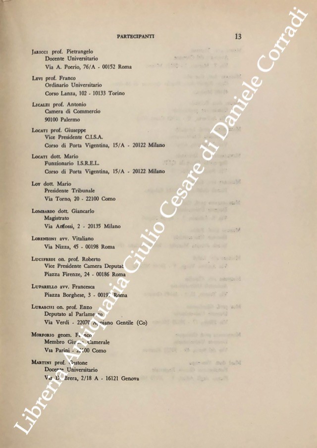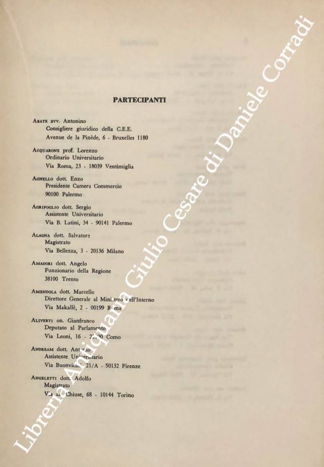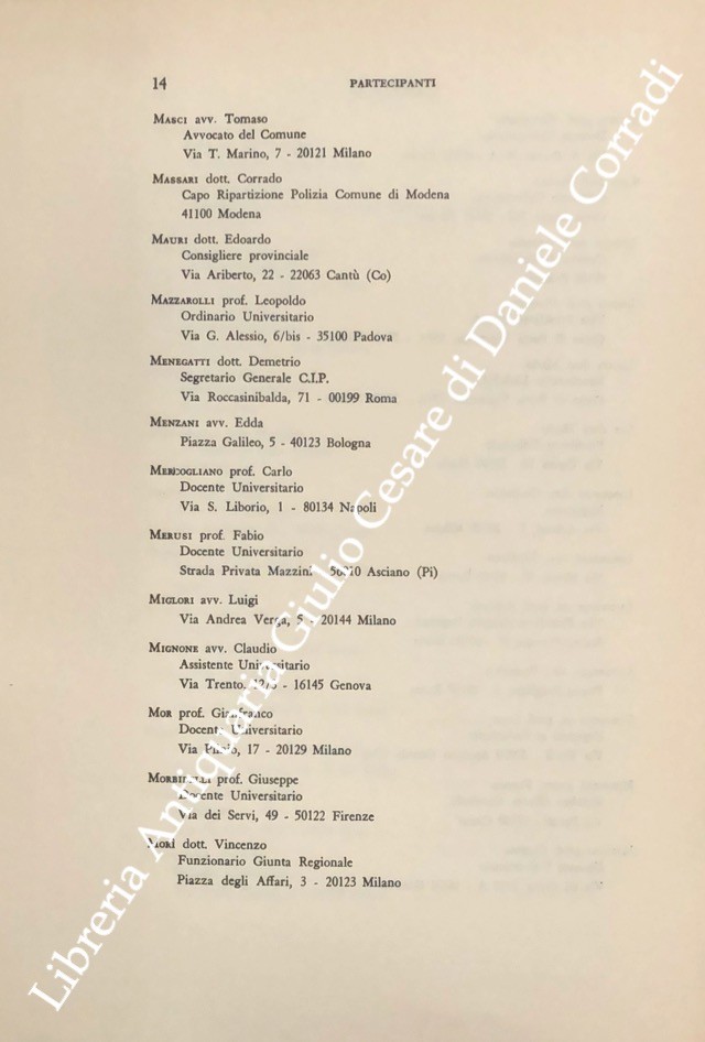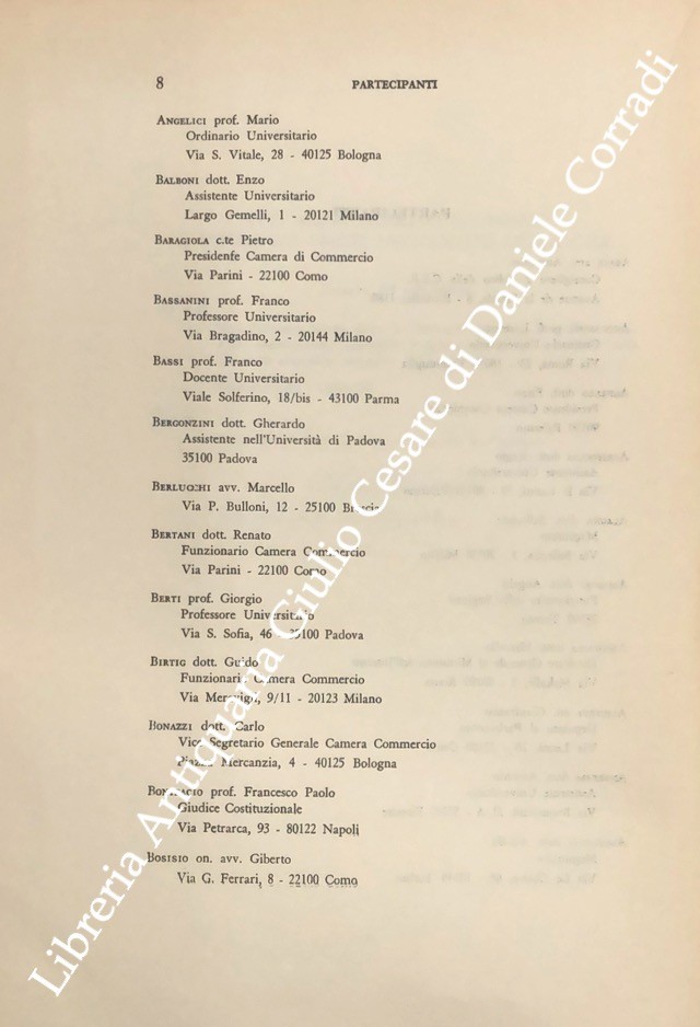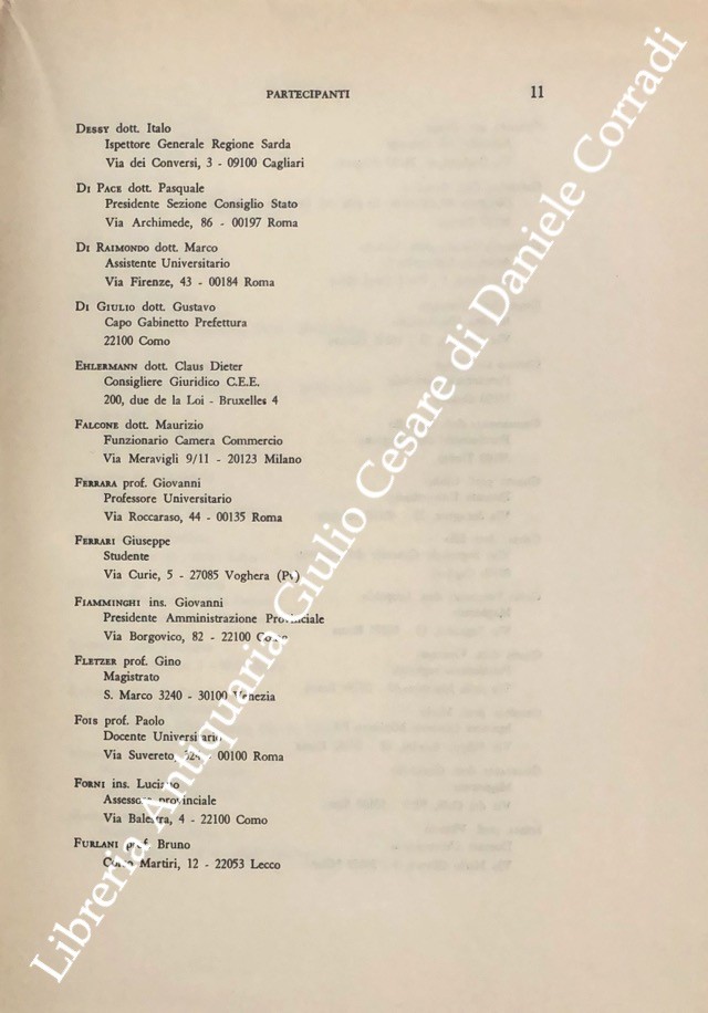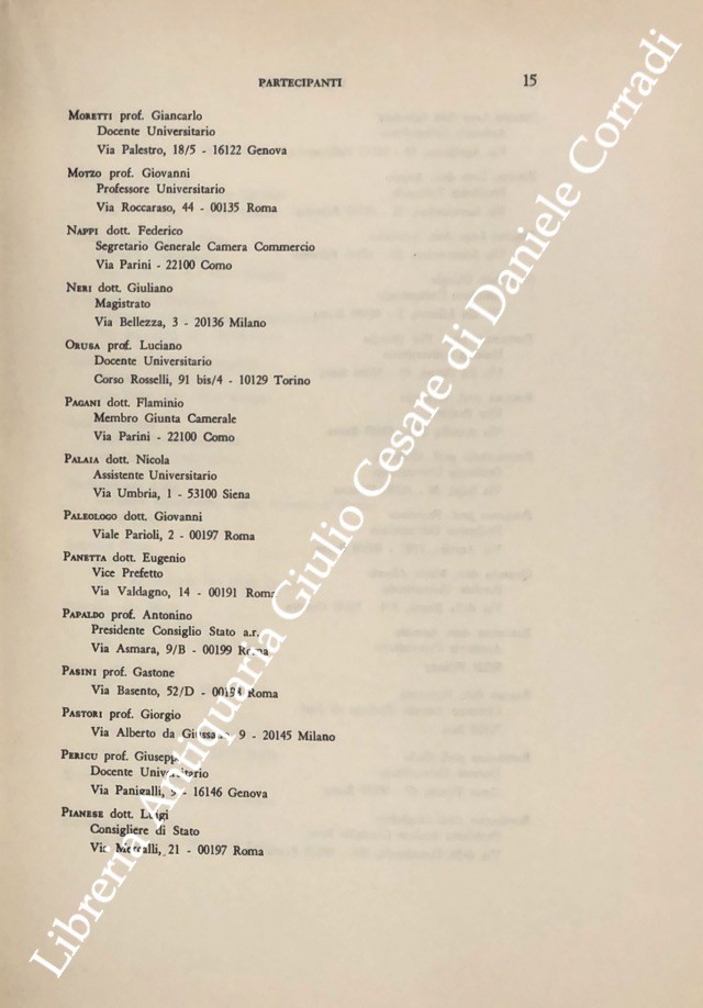 Partecipanti: Abate, Acquarone, Agnello, Agrifoglio, Alagna, Amadori, Amendola, Aliverti, Andream, Angeletti A., Angeletti M., Balboni, Baragiola, Bassanini, Bassi, Bergonzini, Berlucchi, Bertani, Berti, Birtig, Bonazzi, Bonifacio, Bosisio, Buscema, Calisse, Caianiello, Cairoli, Cantucci, Capaccioli, Capalozza, Cappelli, Cappellini, Casetta, Cassese, Catelani, Chiarelli, Chiesa, Colombo, Contardi, Crialesi, Cugurra, De Bernardinis, De Caterini, De Cesare, Deiana, De Lipsis, De Marco A., De Marco E., De Martin, Dessy, Di Pace, Di Raimondo, Di Giulio, Ehlermann, Falcone, Ferrara, Ferrari, Fiamminghi, Fletzer, Fois, Forni, Furlani, Gaggioli, Gariboldi, Gasparini, Gerbi, Giorgio, Giovannelli, Ghetti, Ghisu, Gotti, Grana, Grisolia, Guasparri, Italia, Jaricci, Levi, Licalzi, Locati G. Locati M., Loy, Lombardo, Lorenzoni, Lucifredi, Luparello, Luraschi, Morforio, Martini, Masci, Massari, Mauri, Mazzarolli, Menegatti, Menzani, Mercogliano, Merusi, Miglori, Mignone, Mor, Morbidelli, Morì, Moretti, Motzo, Nappi, Neri, Orusa, Pagani, Palaia, Paleologo, Panetta, Papaldo, Pasini, Pastori, Pericu, Pianese, Piraino Leto Angelo, Piraino Leto Antonino, Piraino Leto S., Piva, Ponticelli, Porpora, Pototschnig, Pugliese, Quaglia, Ragazzini, Ragone, Roehrssen C. Roehrssen G., Romano Alberto, Romano Antonio, Roversi, Rigamonti, Sacchi Morsiani, Sala, Sanfelici, Scarella, Schinaia, Sciacca, Scotto, Salberini, Selvaggi, Spotorno, Staderini, Spagnolo, Stancanelli, Tacchi, Taroni, Tedeschini, Torrigiani, Tosetti, Treves, Trimarchi, Troccoli, Turri, Uccellatore, Vailati, Velletri, Ventura, Veratti, Verghetti, Viola, Virga, Vitucci, Volterra, Vozzi, Zumbè, Zara