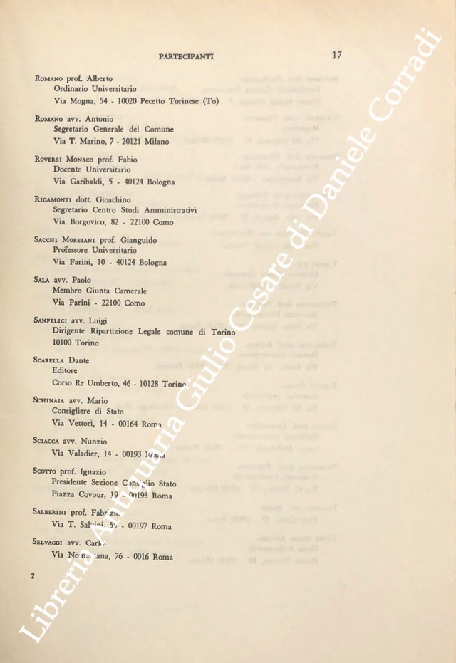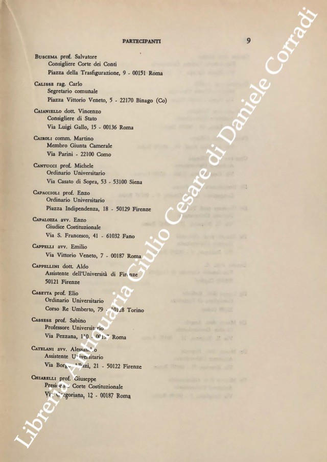 Aquarone L. - Angelici M. - Bassi F. - Berti G. - Cantucci M. - Capaccioli E. - Capalozza E. - Casetta E. - Cassese S. - Ferrara G. - Italia V. - Levi F. - Lucifredi R. - Mor G. - Pastori G. - Pototschnig U. - Pugliese F. - Romano A. - Roversi Monaco F. - Treves G. - Trimarchi F. - Virga P. et alii