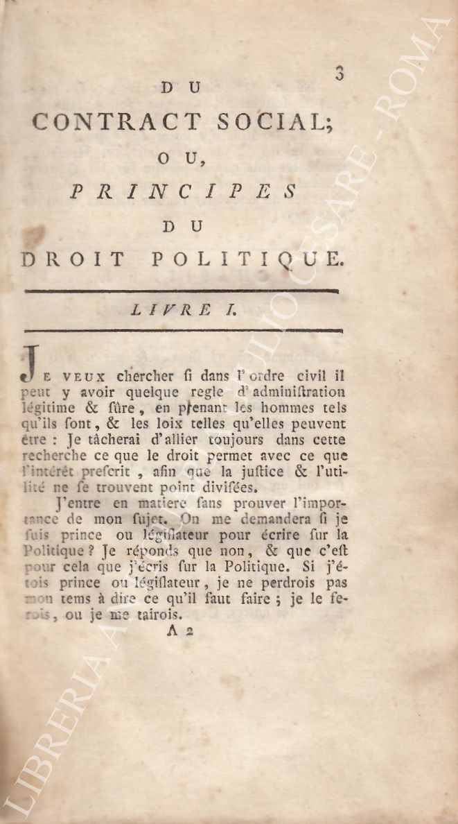 Du contract social; ou principes du droit politique. Par J.J. Rousseau, citoyen de Geneve. Foederis aequas Dicamus leges