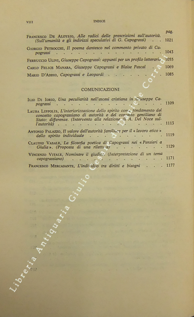 Interventi realizzati da: Accardo, Acocella, Berri, Bessero-Belti, Biamonti, Calabrò, Camilucci, Campanini, Cannada-Bartoli, Ciarletta, D'Addio, Dal Brollo, Delogu, De Aloysio, De Giovanni, De Mas, Del Noce, Di Iorio, Esposito, Fabro, Fazzalari, Fisichella, Frosini, Fumagalli-Carulli, Galloni, Gentile, Giachery, Grasso, Guarino, Lippolis, Lombardi, Manara, Mancini, Masullo, Mercadante, Monaco, Morelli, Mura, Negri, Nicolosi, Opocher, Orestano, Palazzo, Papponetti, Petrocchi, Prini, Pugliese, Romagnoli, Serra, Tarantino, Tessitore, Trabucchi, Ulivi, Vasale, Vettori, Vian, Vitale, Zaccaria
