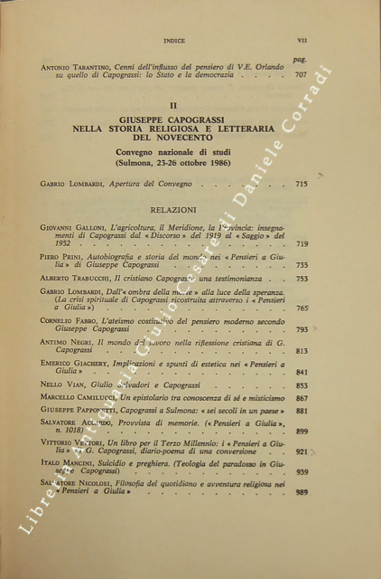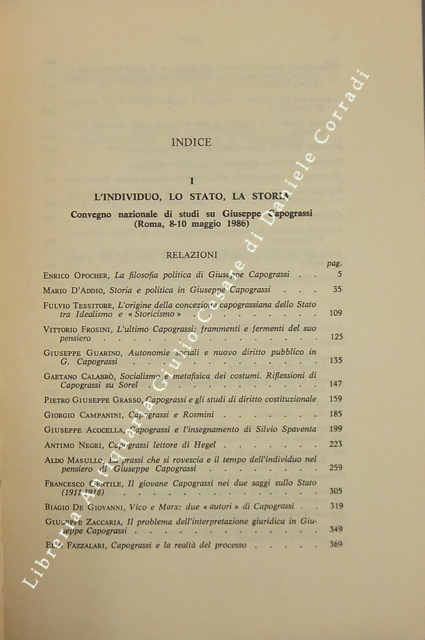 Due Convegni su Giuseppe Capograssi (Roma-Sulmona 1986). Atti. L'individuo, lo stato, la storia. G. Capograssi nella storia religiosa e letteraria del novecento