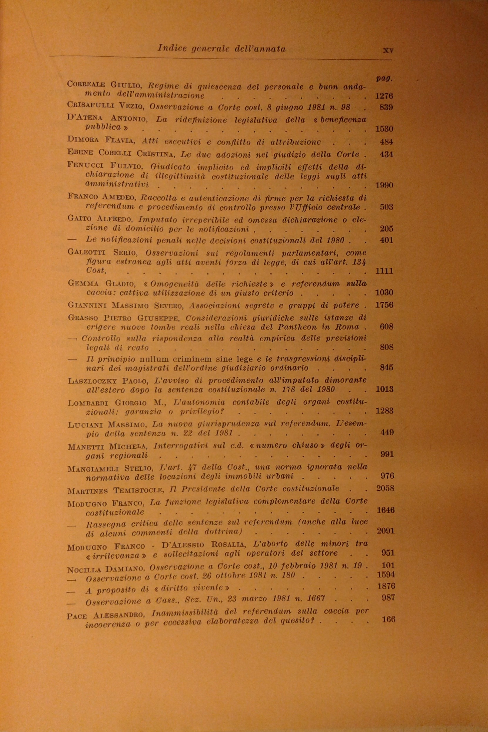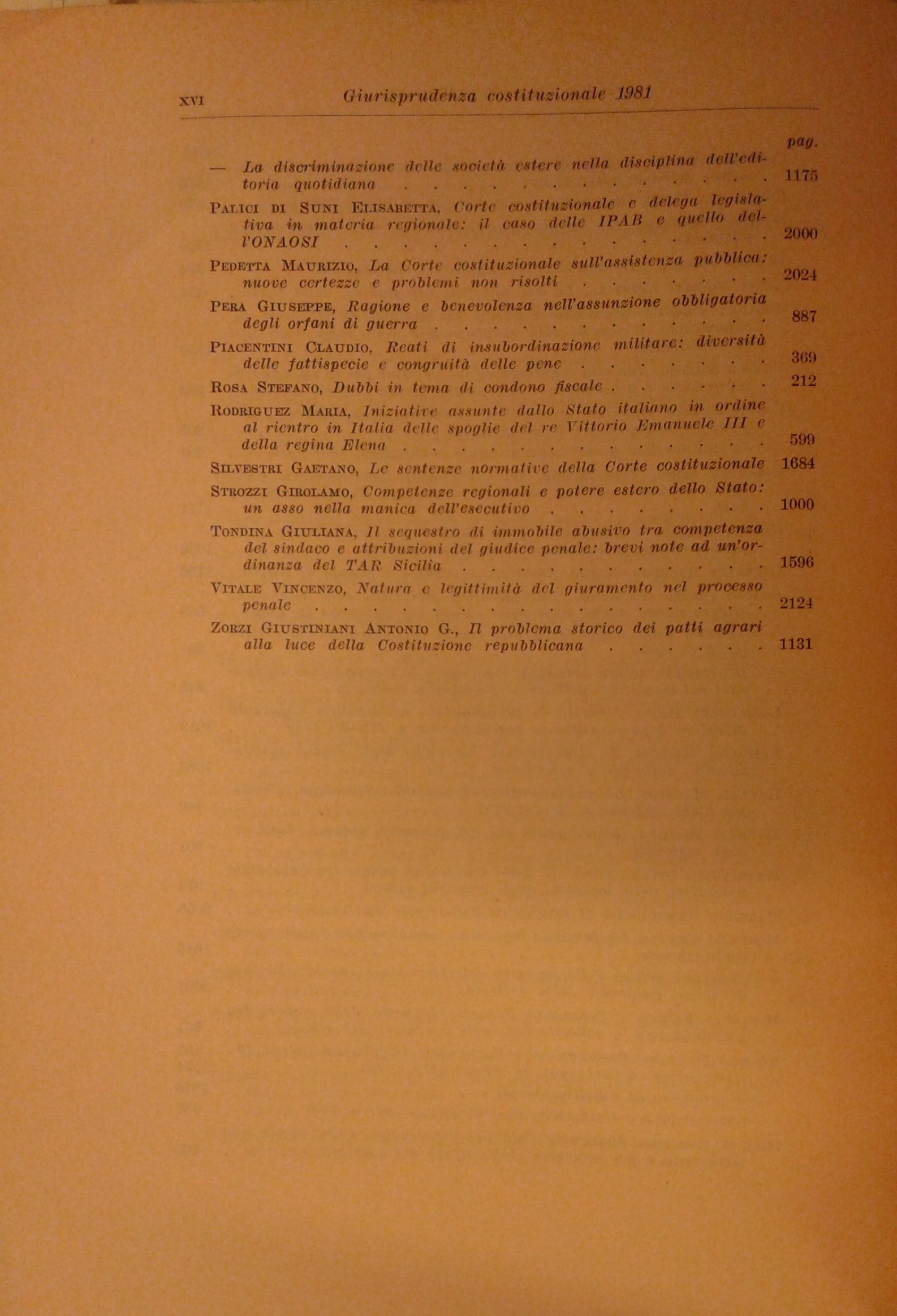 Giurisprudenza Costituzionale. Fondata da Carlo Esposito, Massimo Severo Giannini, Costantino Mortati. Anno XXVI - 1981
