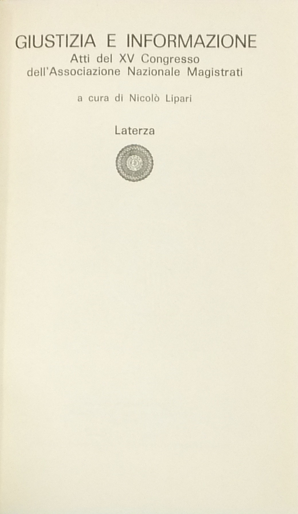 Giustizia e informazione. Atti del XV Congresso dell'Associazione Nazionale Magistrati. A cura di Nicolò Lipari