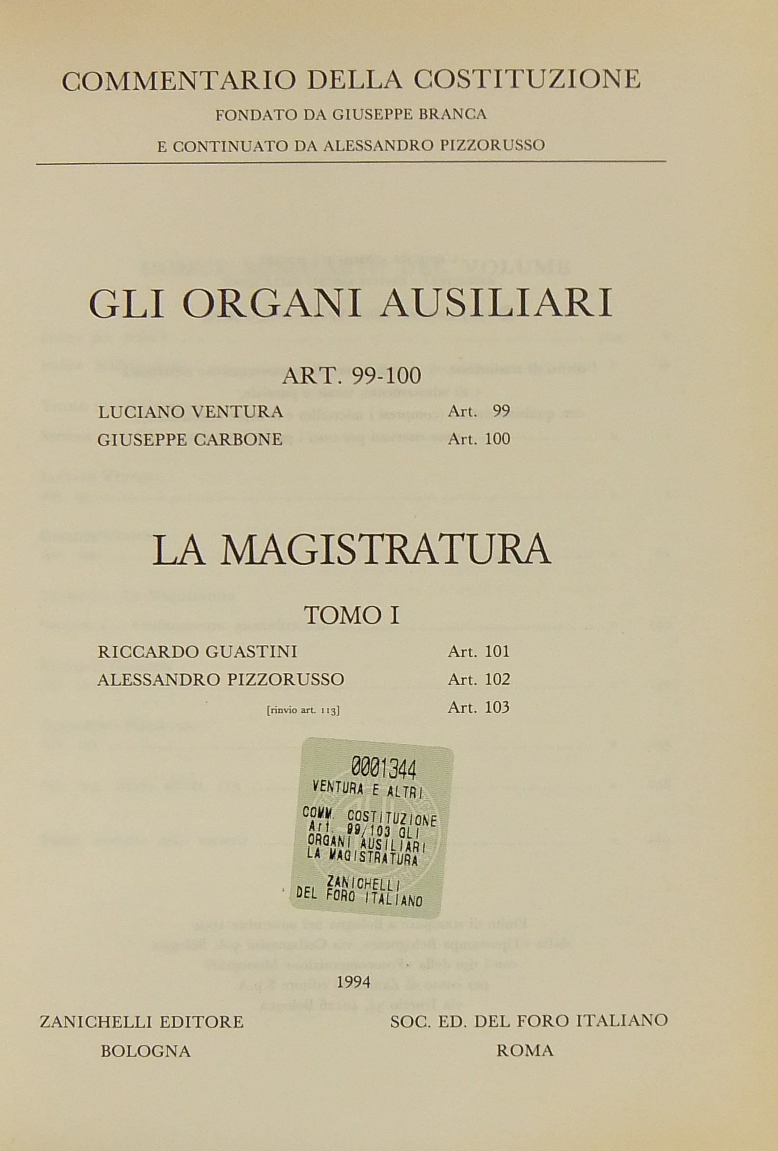 Gli organi ausiliari. Art. 99-100. La Magistratura. Tomo I - Art. 101-103