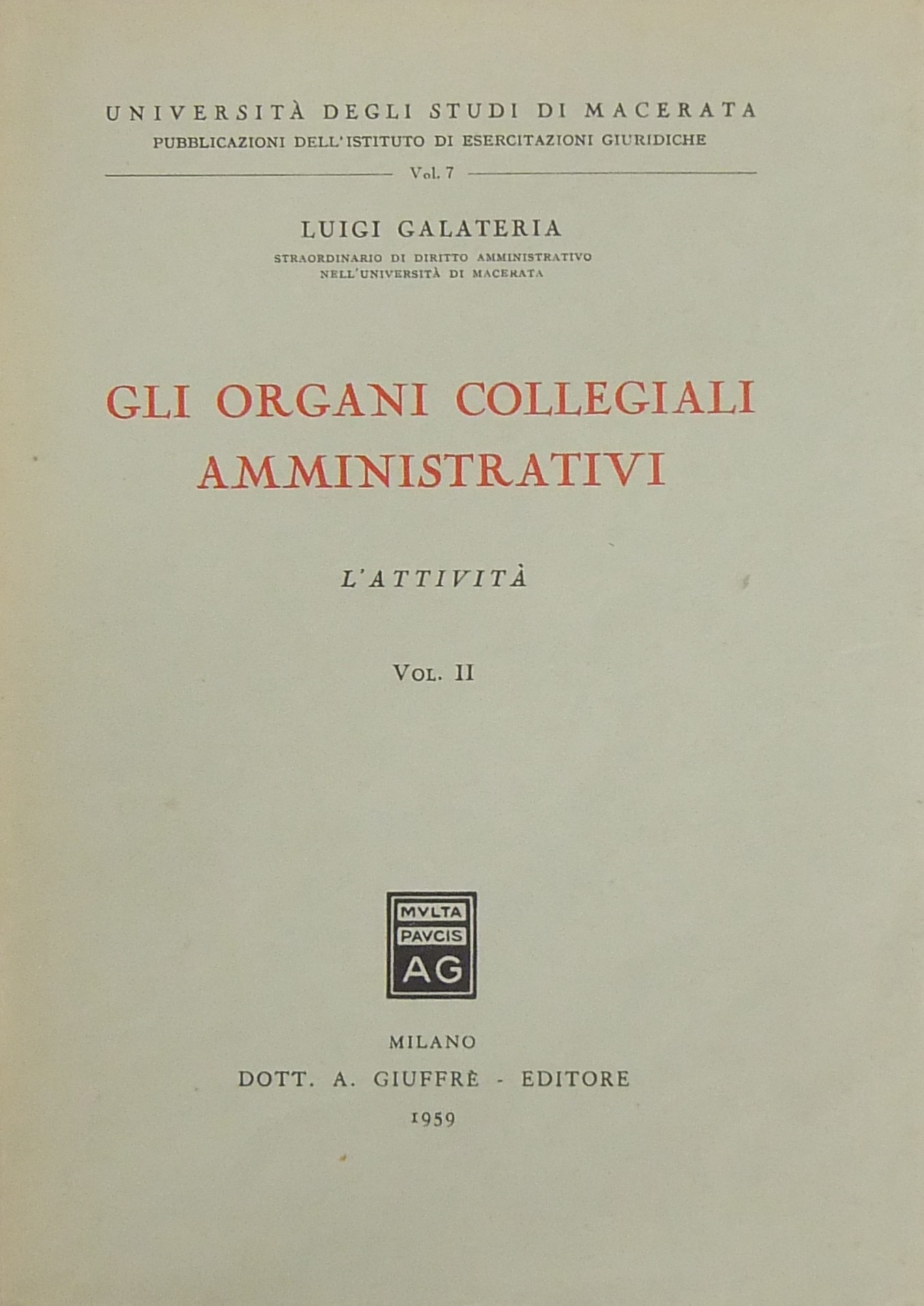 Gli organi collegiali amministrativi. Vol. I - La struttura. Vol. II - L'attivitÃ