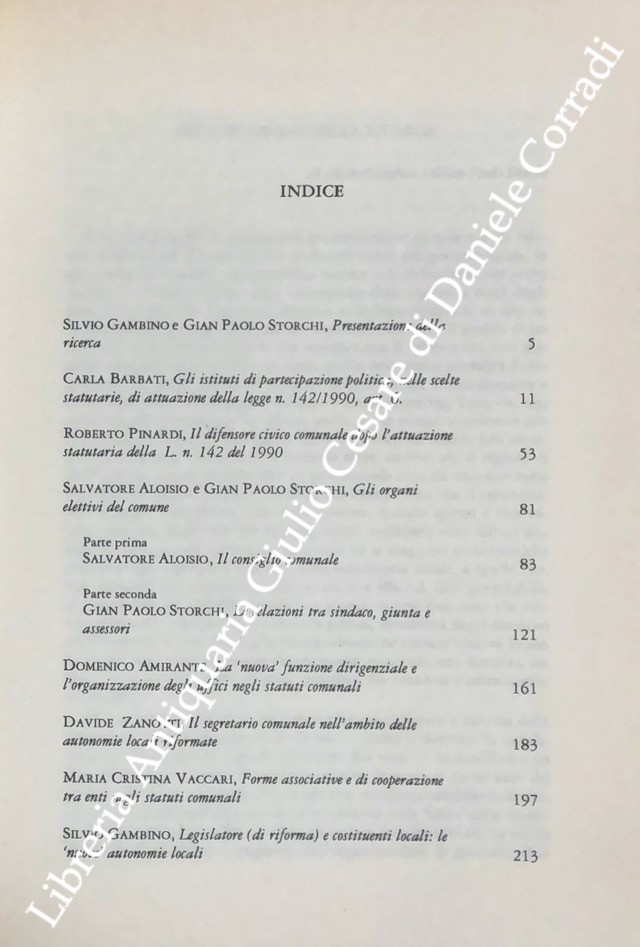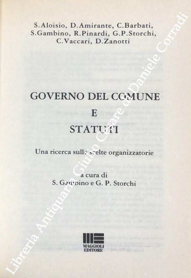 Governo del Comune e Statuti. Una ricerca sulle scelte organizzatorie. Prefazione di Giorgio Lombardi
