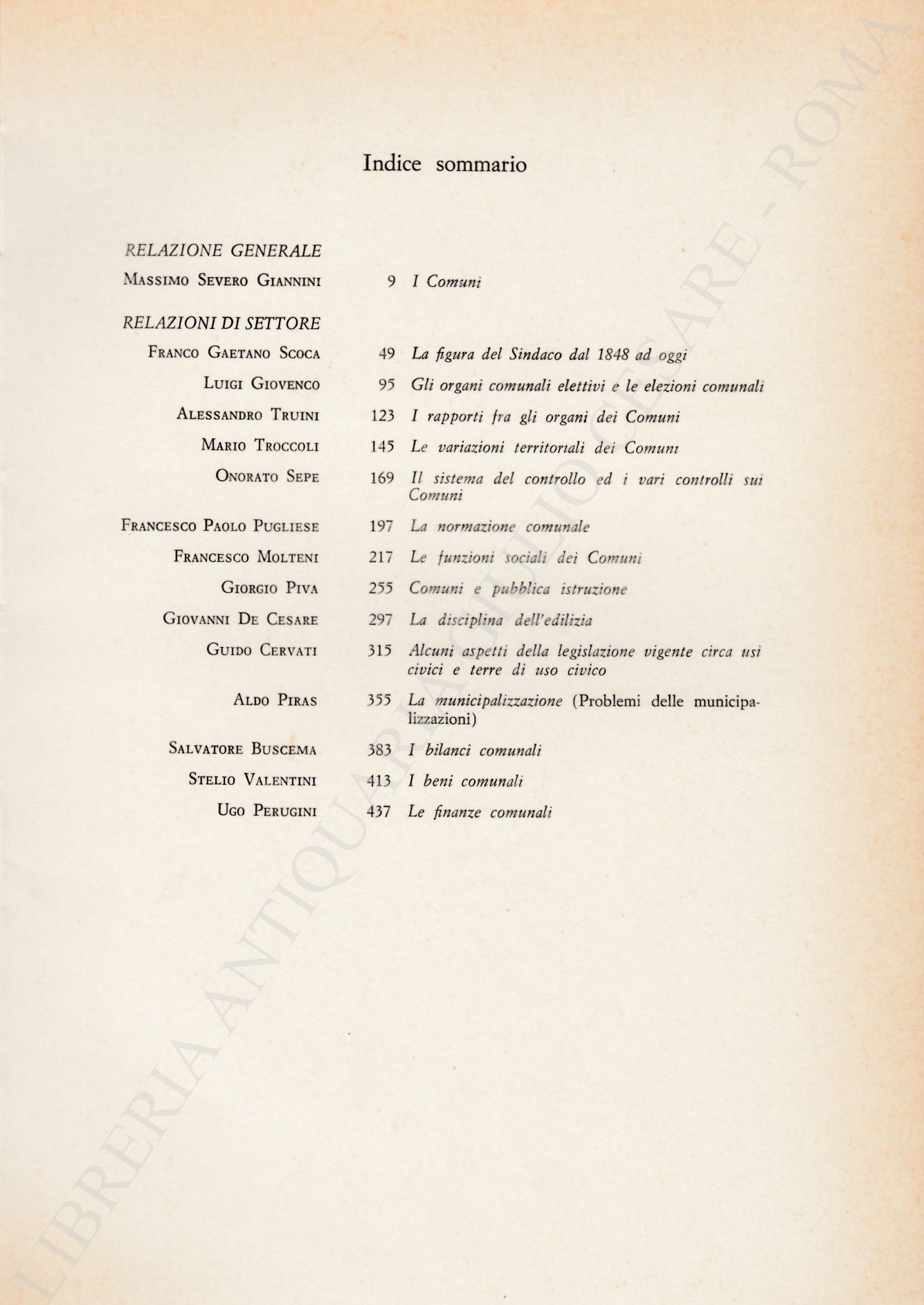 Pubblicazioni dell’Istituto per la Scienza dell’Amministrazione Pubblica. Atti del Congresso celebrativo del centenario delle leggi amministrative di unificazione. Sotto l’alto patronato del Presidente della Repubblica. Scritti di: Giannini, Scoca, Giovenco, Truini, Troccoli, Sepe, Pugliese, Molteni, Piva, De Cesare, Cervati, Piras, Buscema, Valentini, Perugini